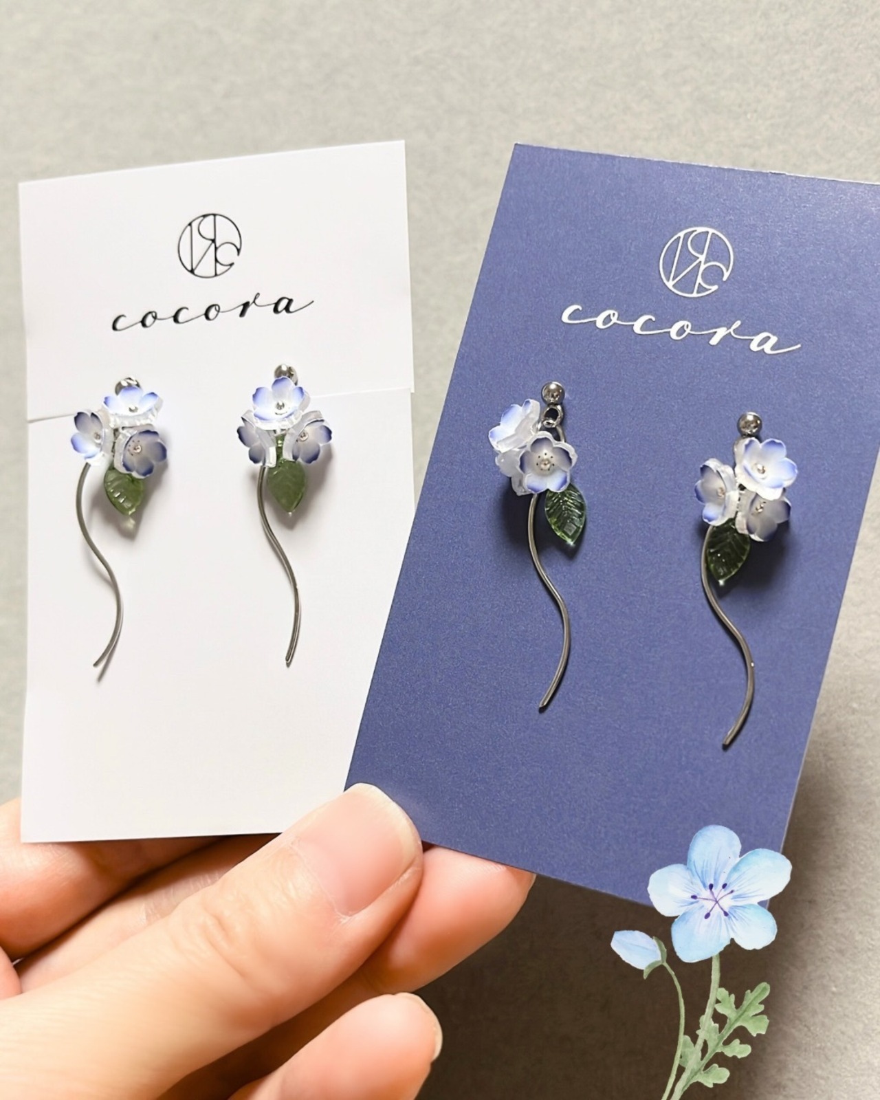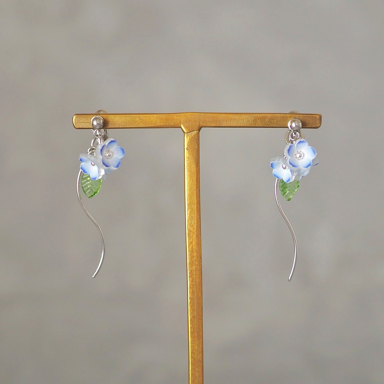 風に揺れるような柔らかなデザインのネモフィラピアス/イヤリングです。