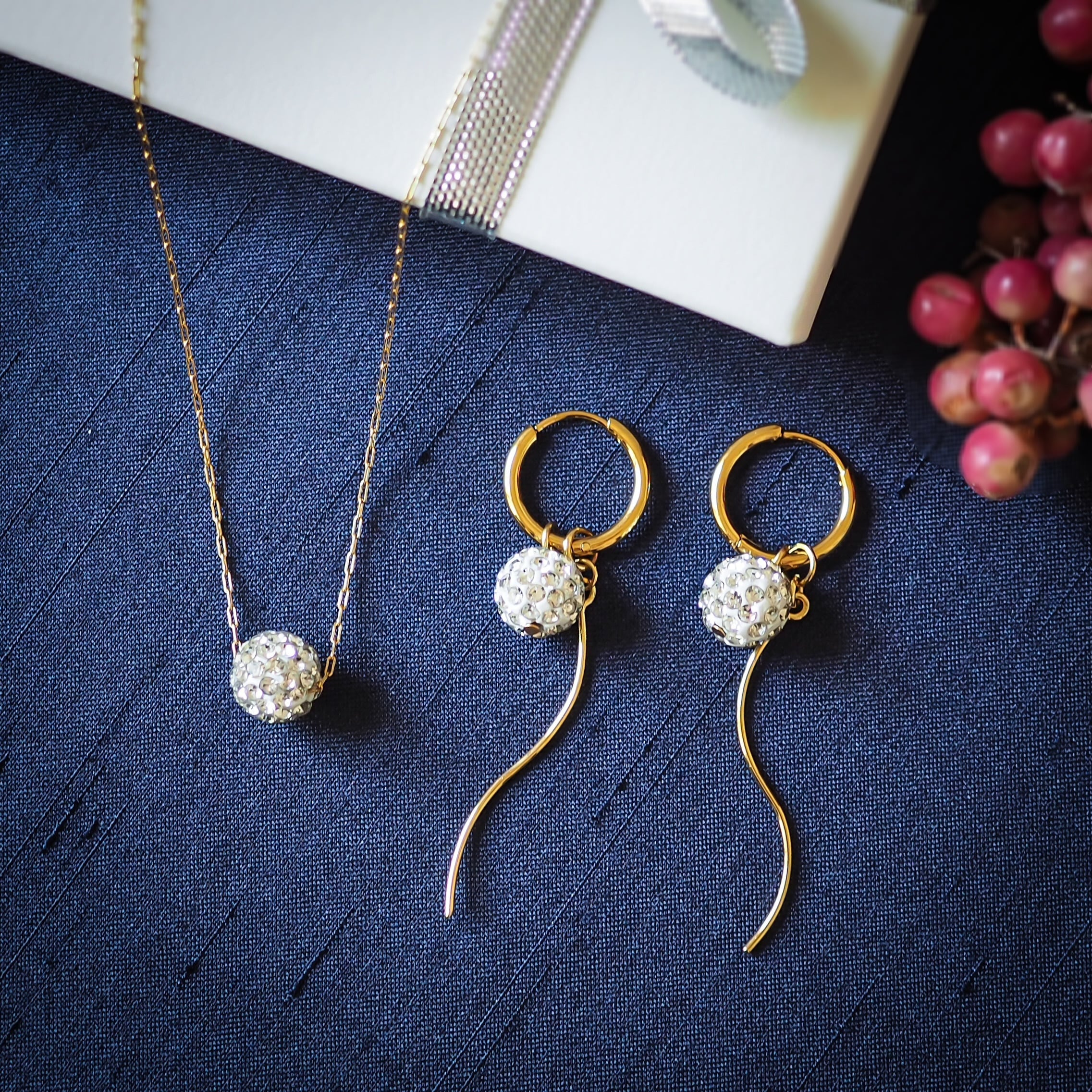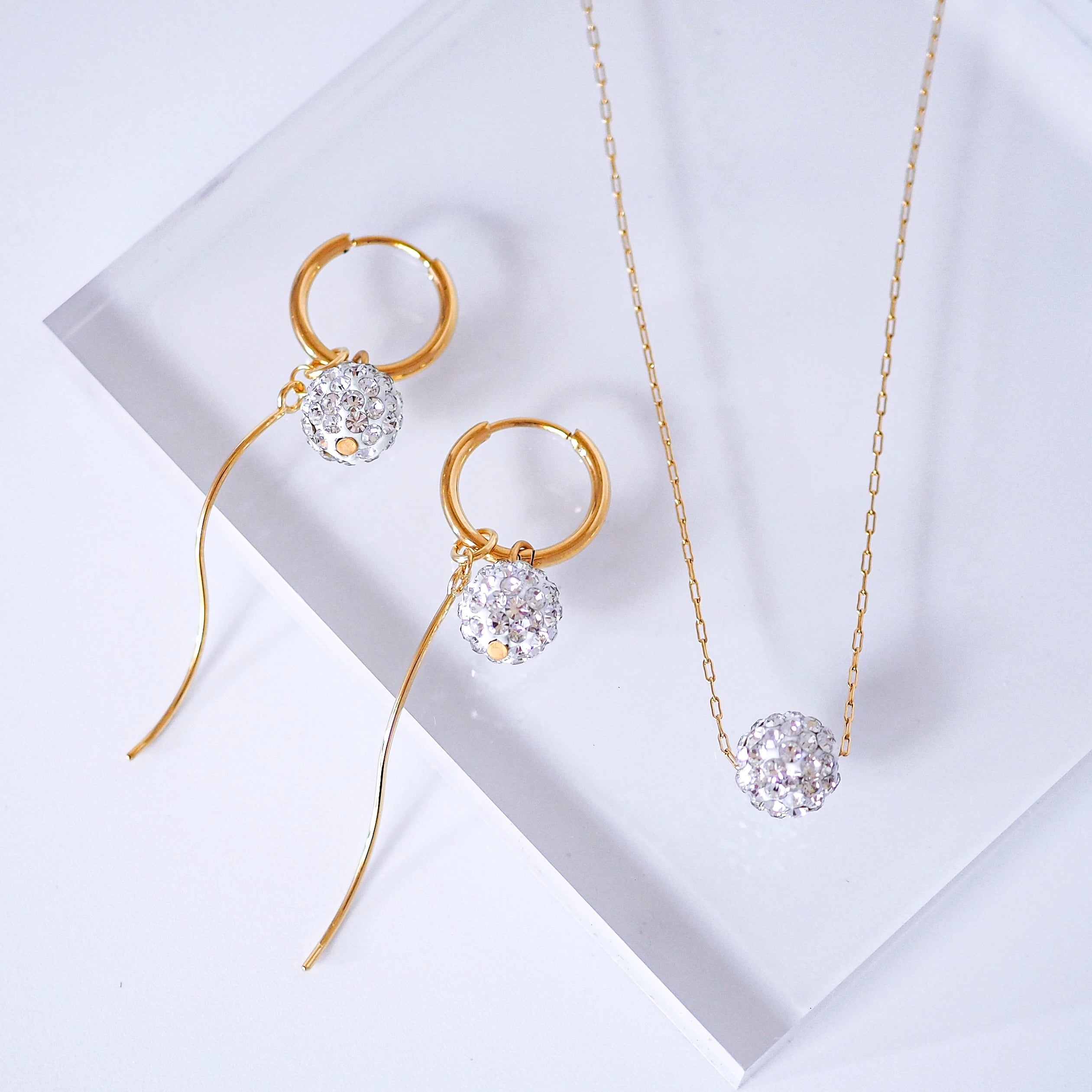 パヴェボール4wayピアス/イヤリング&ネックレスセット金属アレルギー対応サージカルステンレス N156