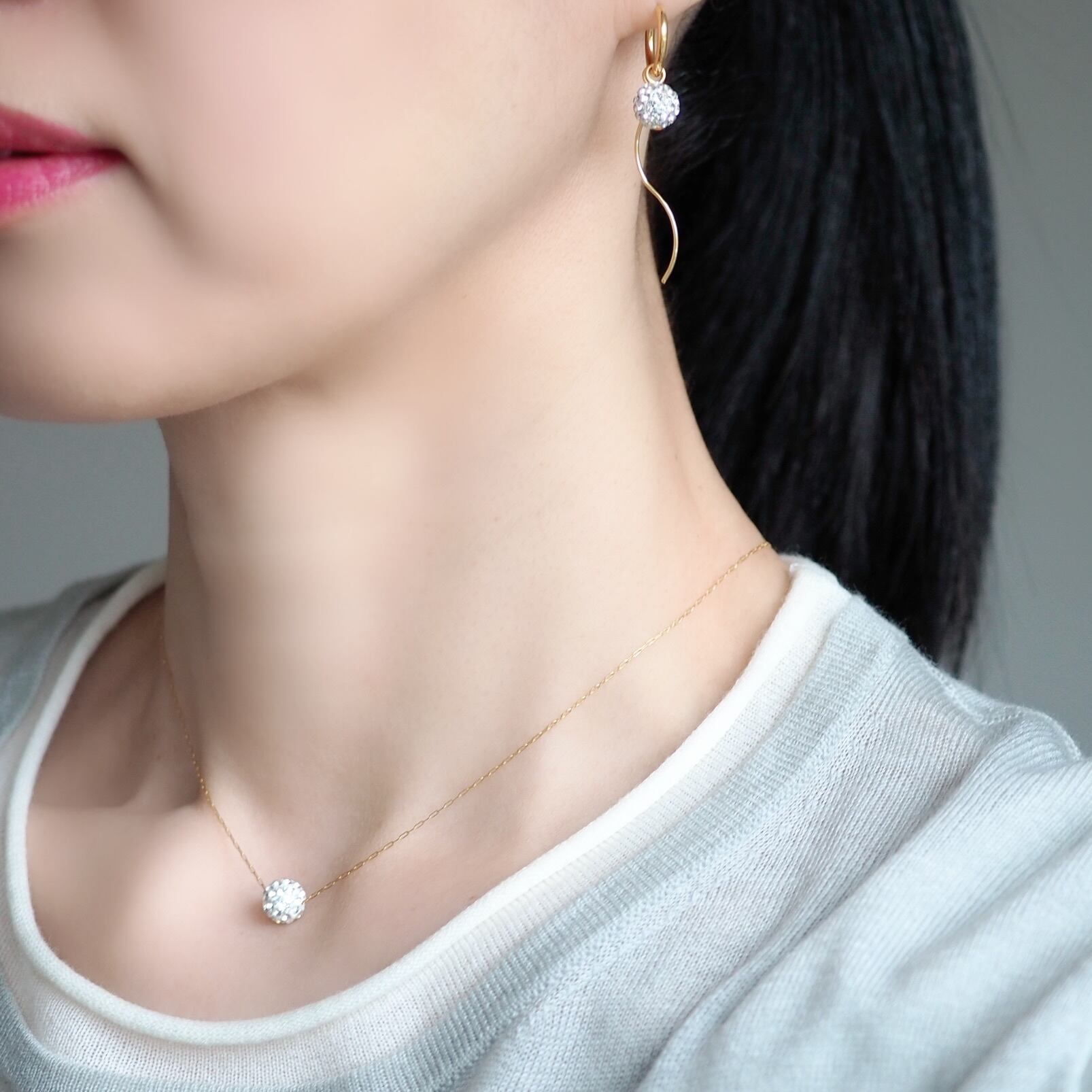 顔周りや首周りにキラキラがあるとお肌の艶がアップ