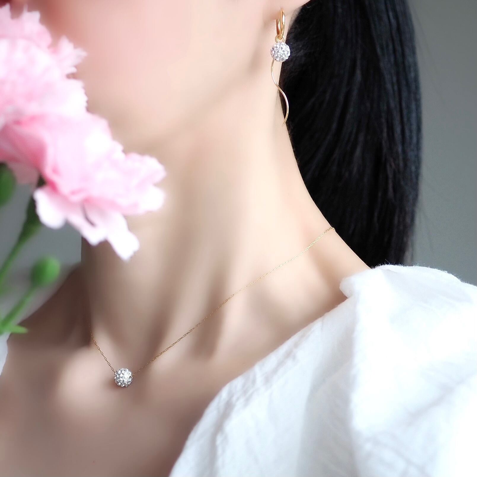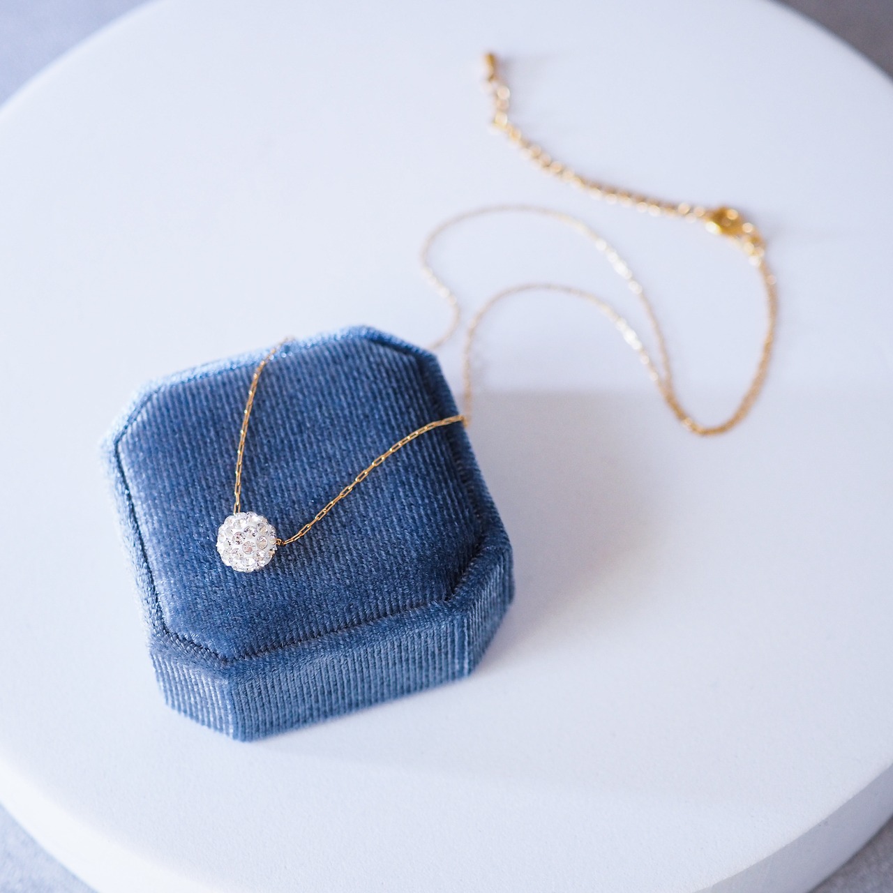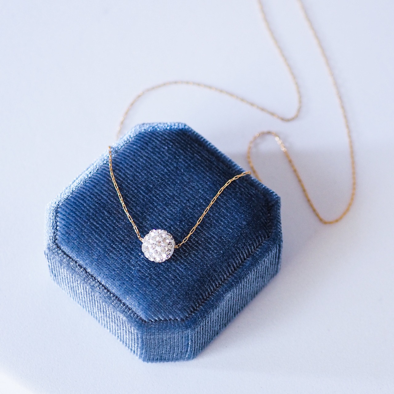 そんなパヴェボールがポイントと繊細なチェーンの上品なネックレスです
