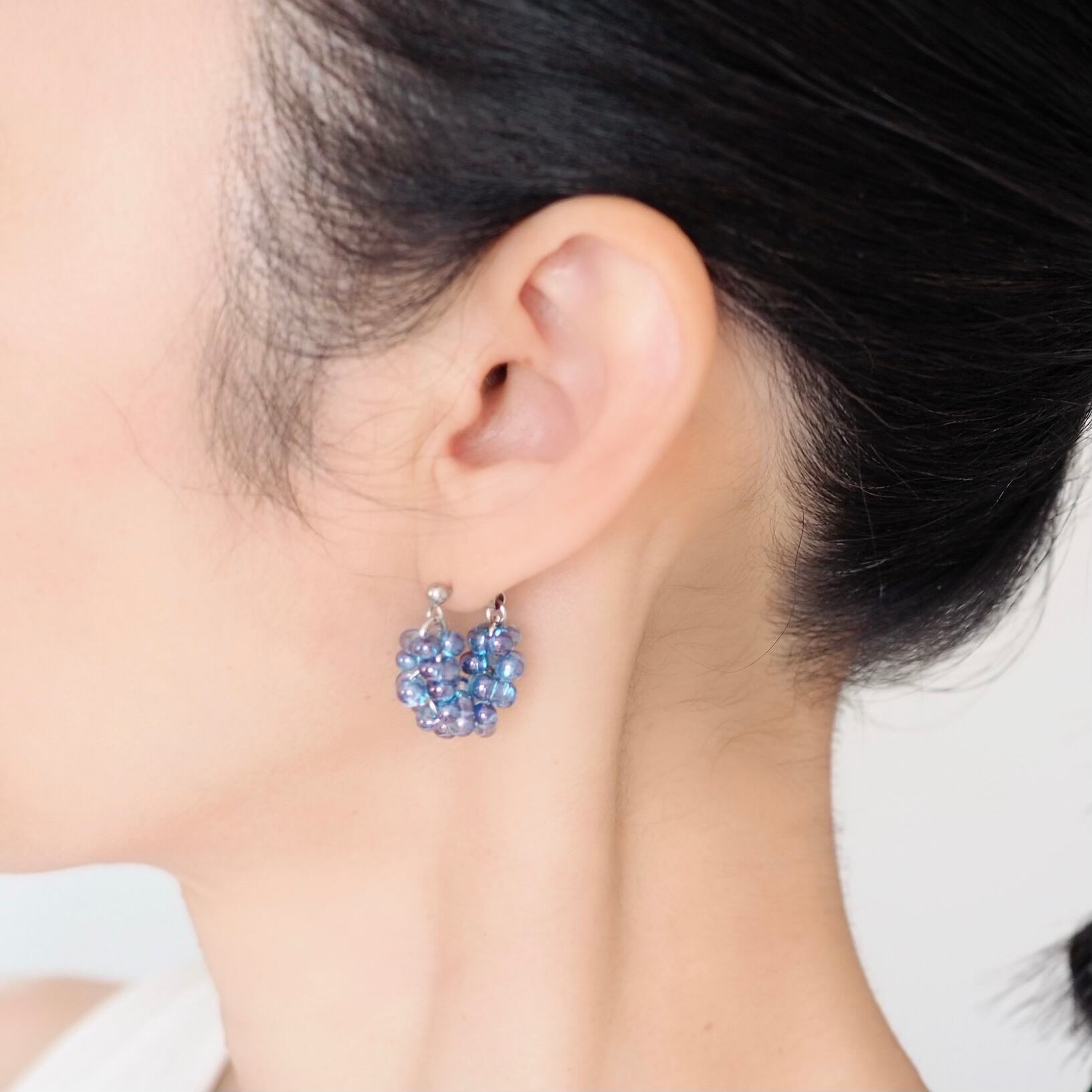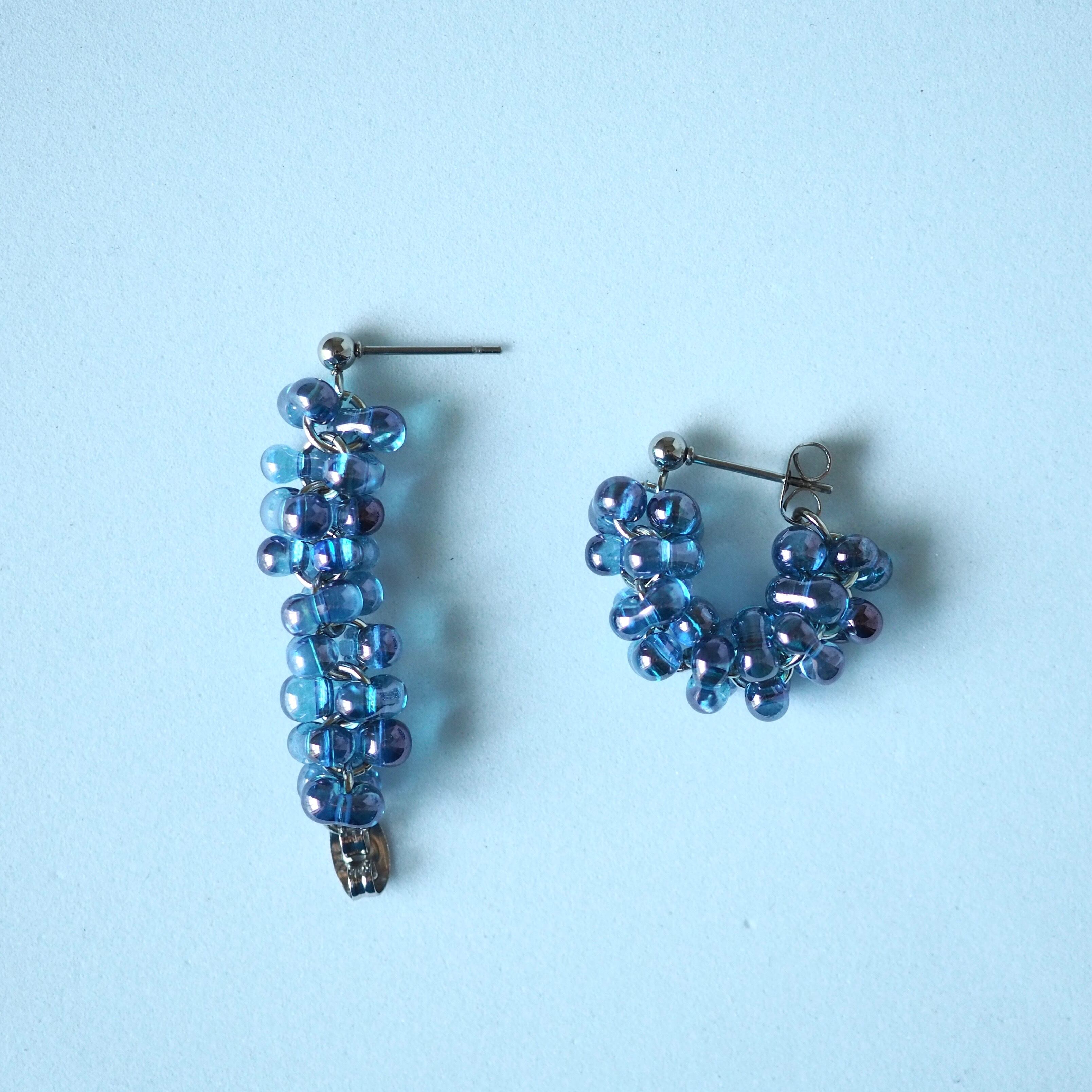 透明感のあるプリズムブルーのハーフフープピアス/イヤリング