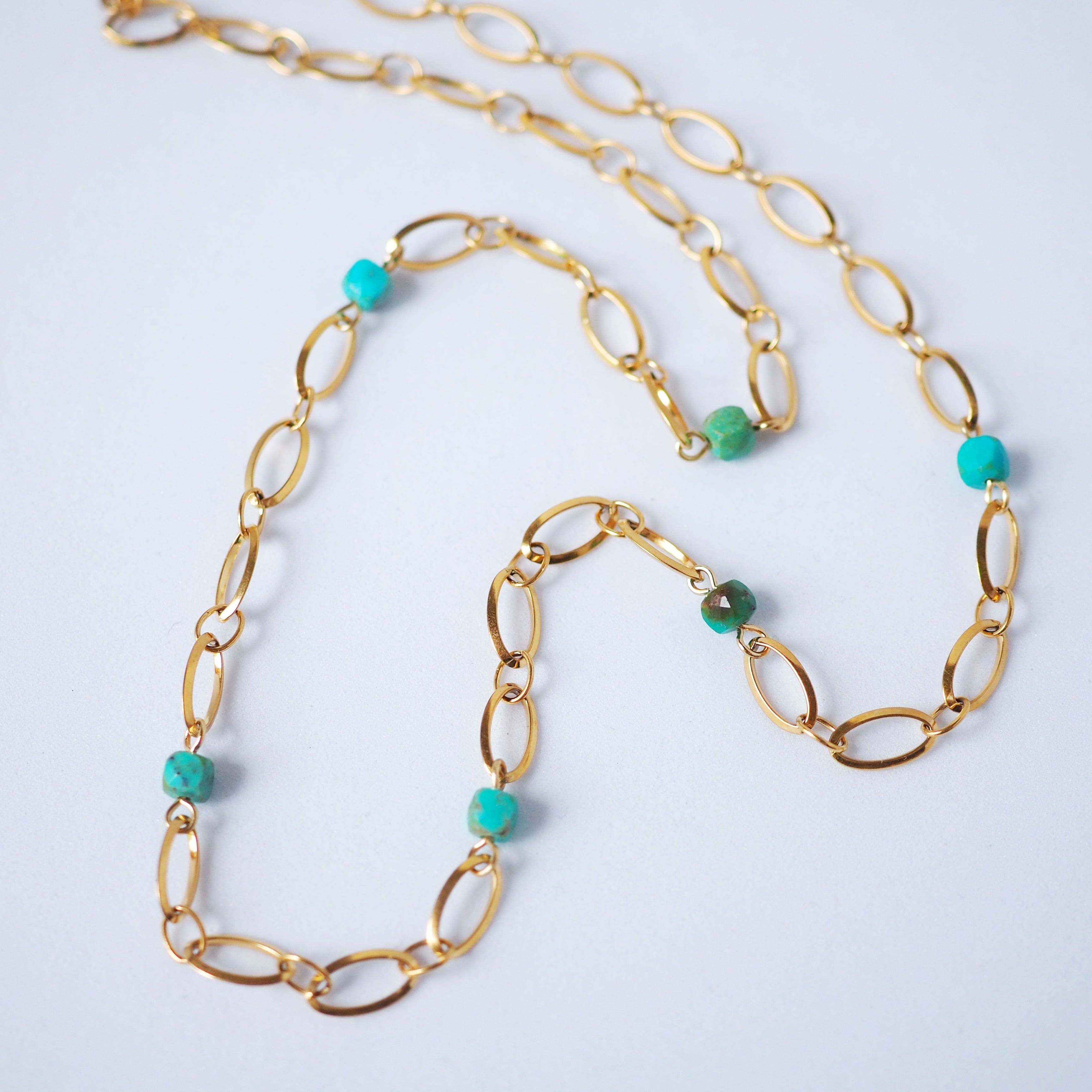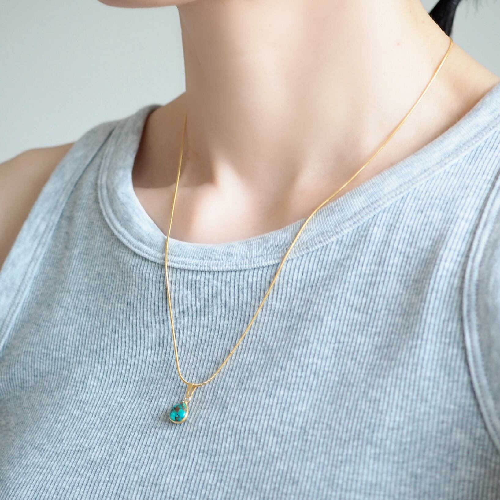 ターコイズ ステーションネックレス 金属アレルギー対応 サージカルステンレス N162 夏