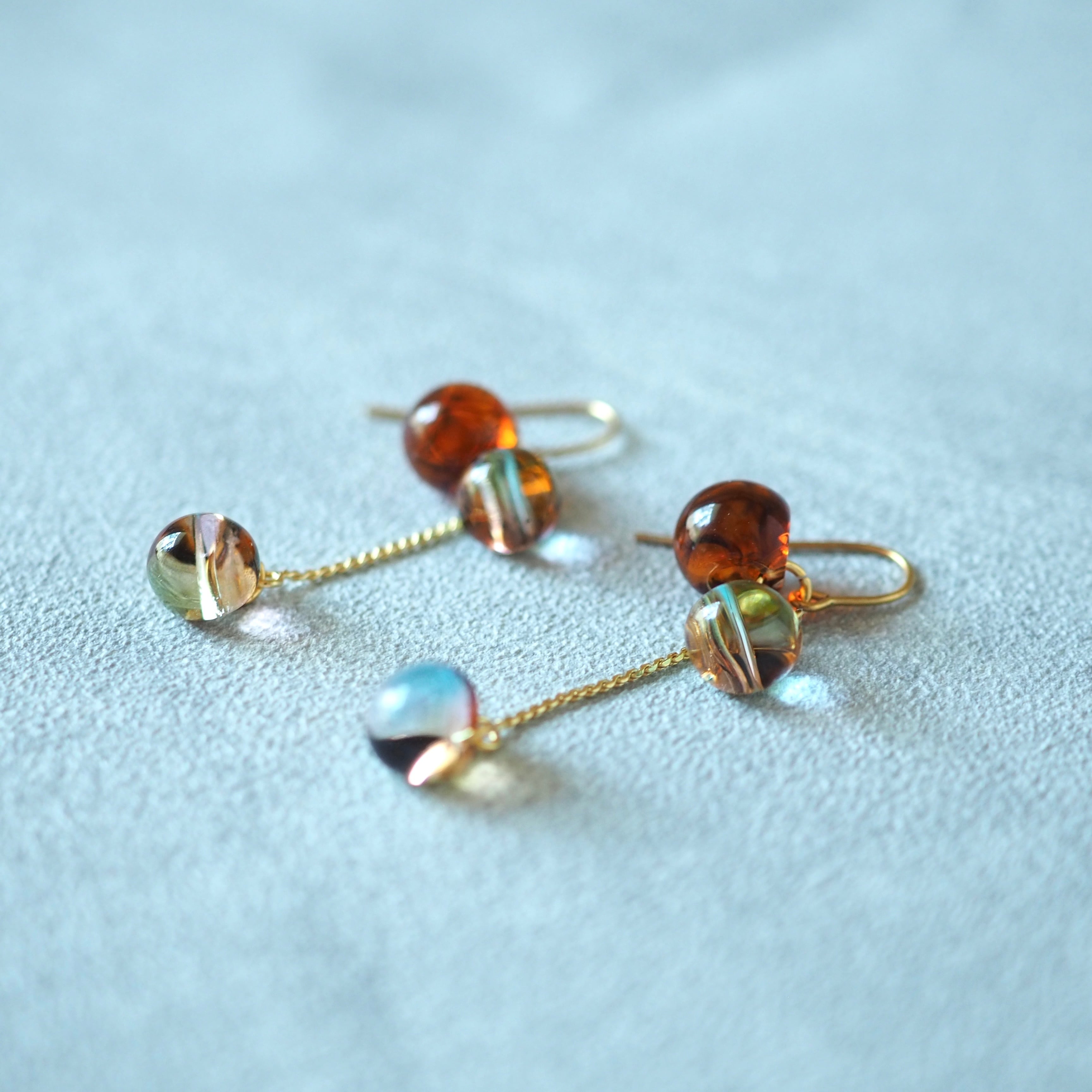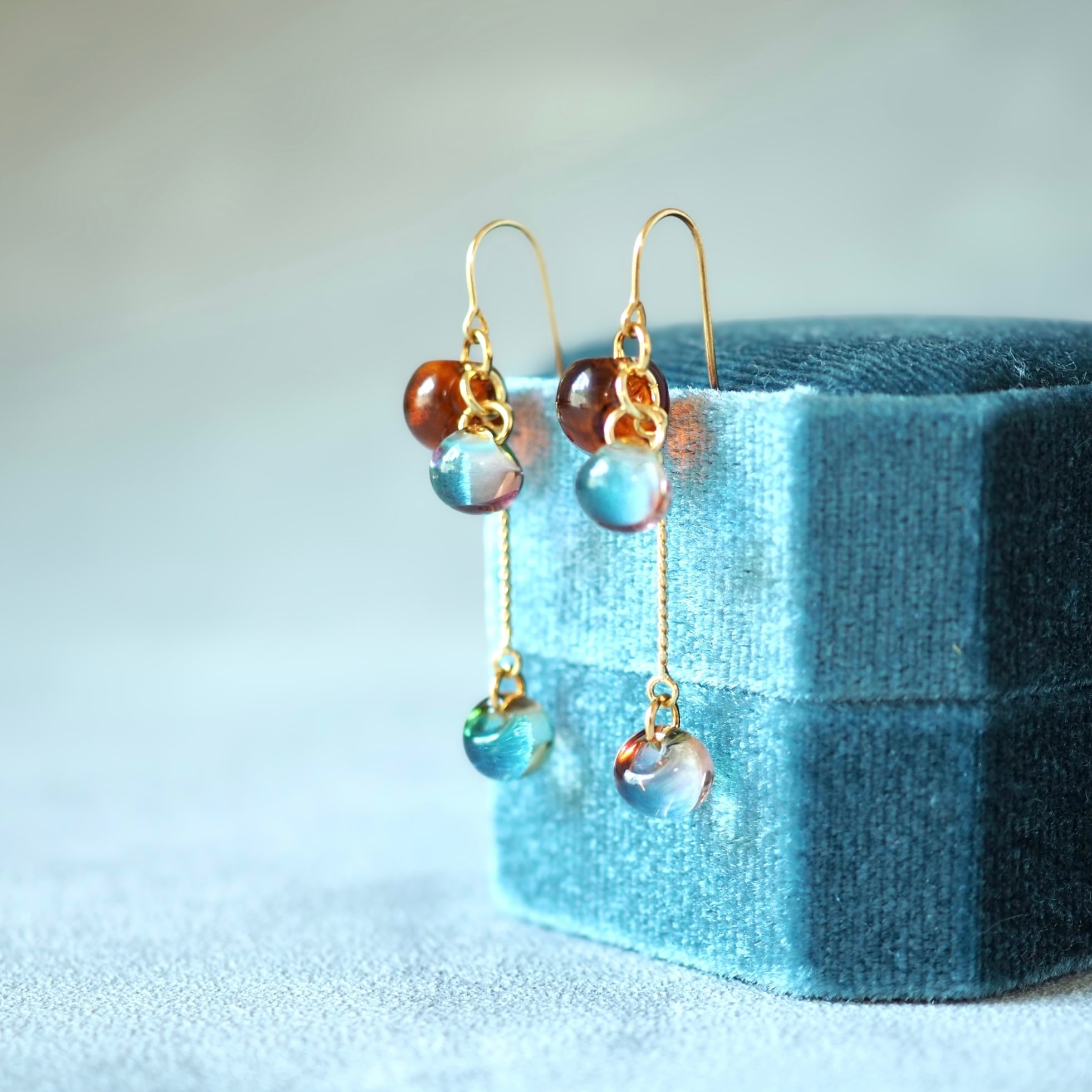 夕暮れから夜へと移りゆく空の色を閉じ込めたようなピアス/イヤリングです