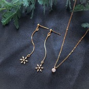 雪降る夜 雪の結晶ジルコニアネックレス&ピアス/イヤリングセット クリスマス コフレ 送料無料 N165 サージカルステンレス