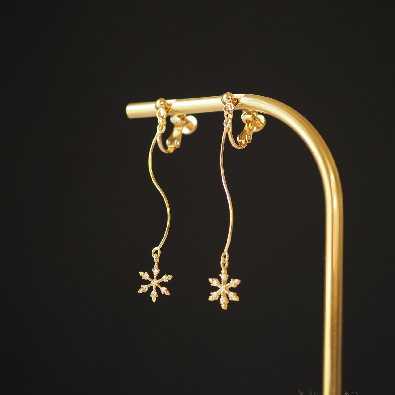 [雪の結晶 雪降る夜ピアス/イヤリング]