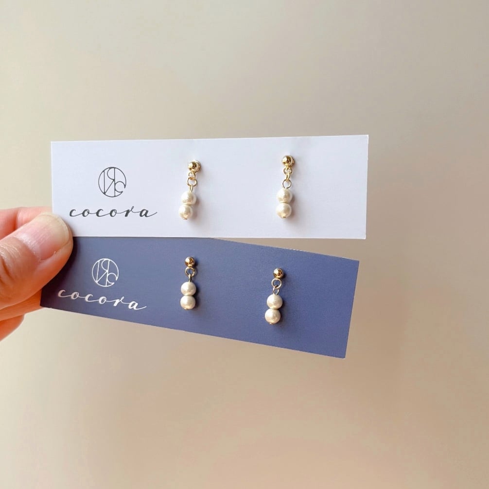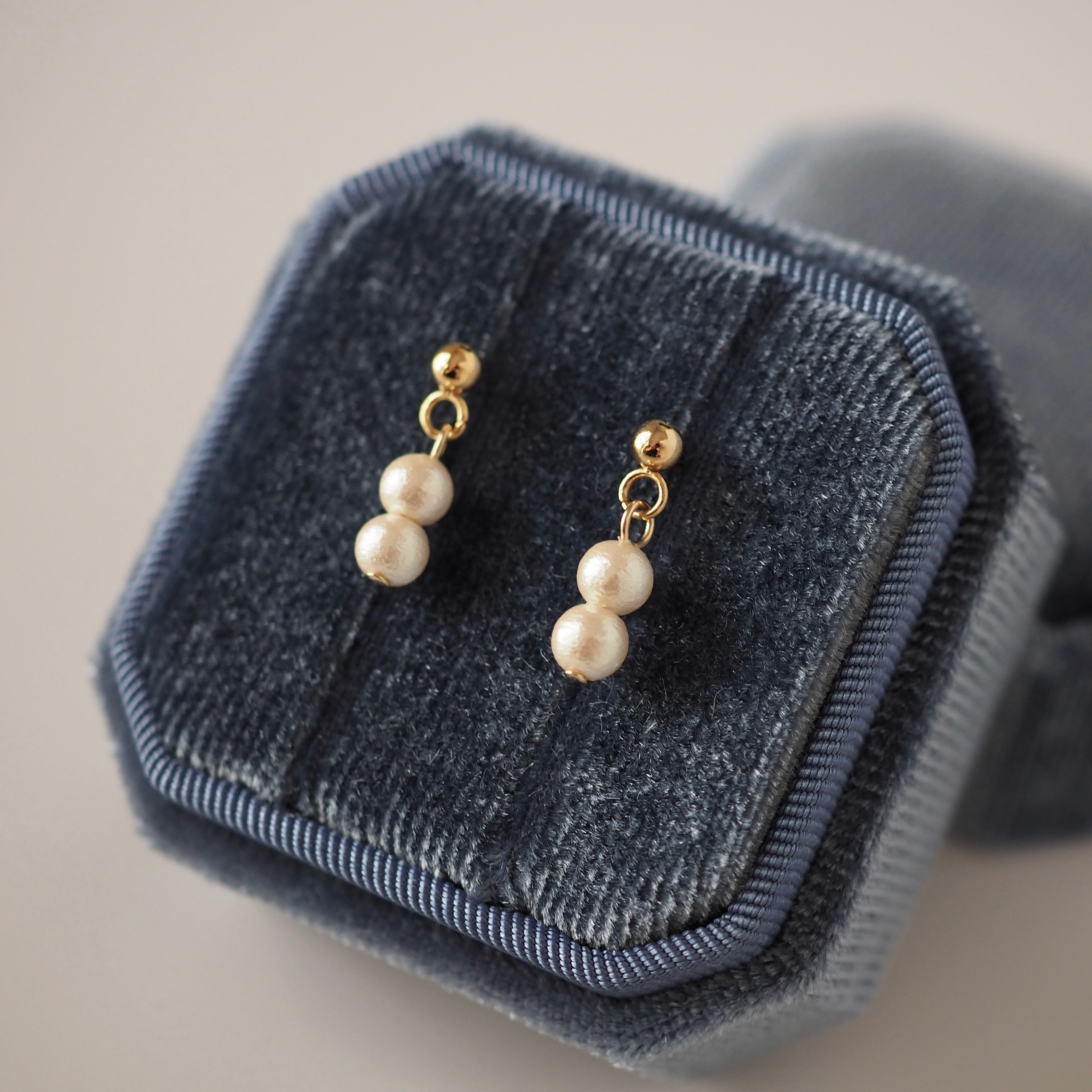 小さなコットンパール2粒ピアス/イヤリング サージカルステンレス フォーマル