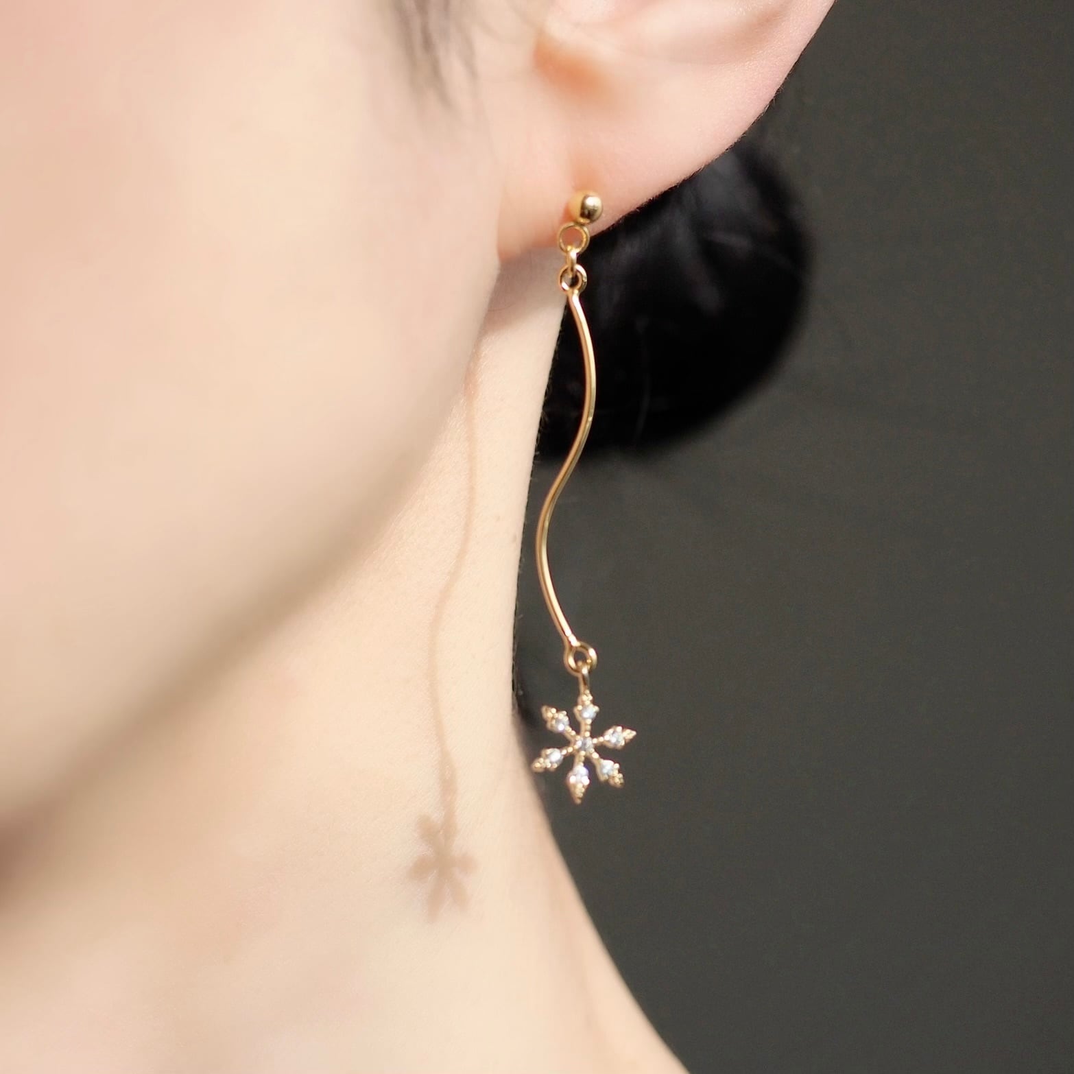 • S字カーブを描く華奢なラインの先に、キラキラと輝くジルコニアを敷き詰めた雪の結晶モチーフを添えました