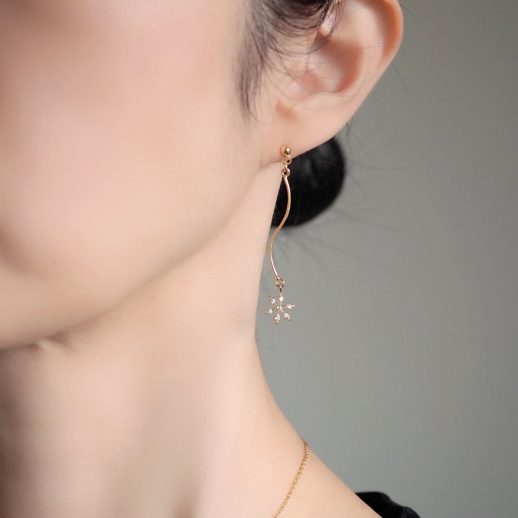 [雪降る夜 雪の結晶 ピアス/イヤリング]