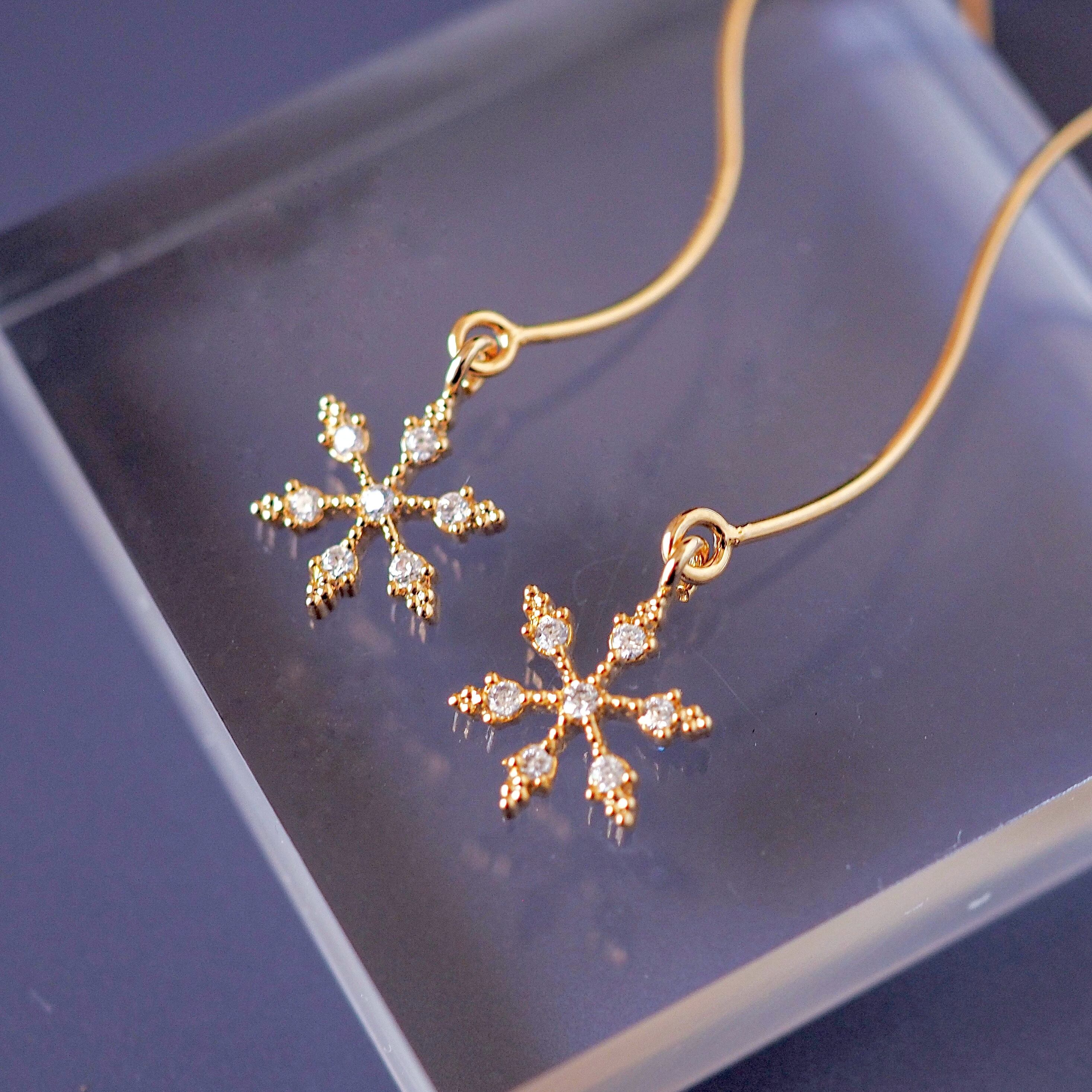 雪降る夜 雪の結晶 ジルコニアピアス/イヤリング クリスマスP1200 サージカルステンレス