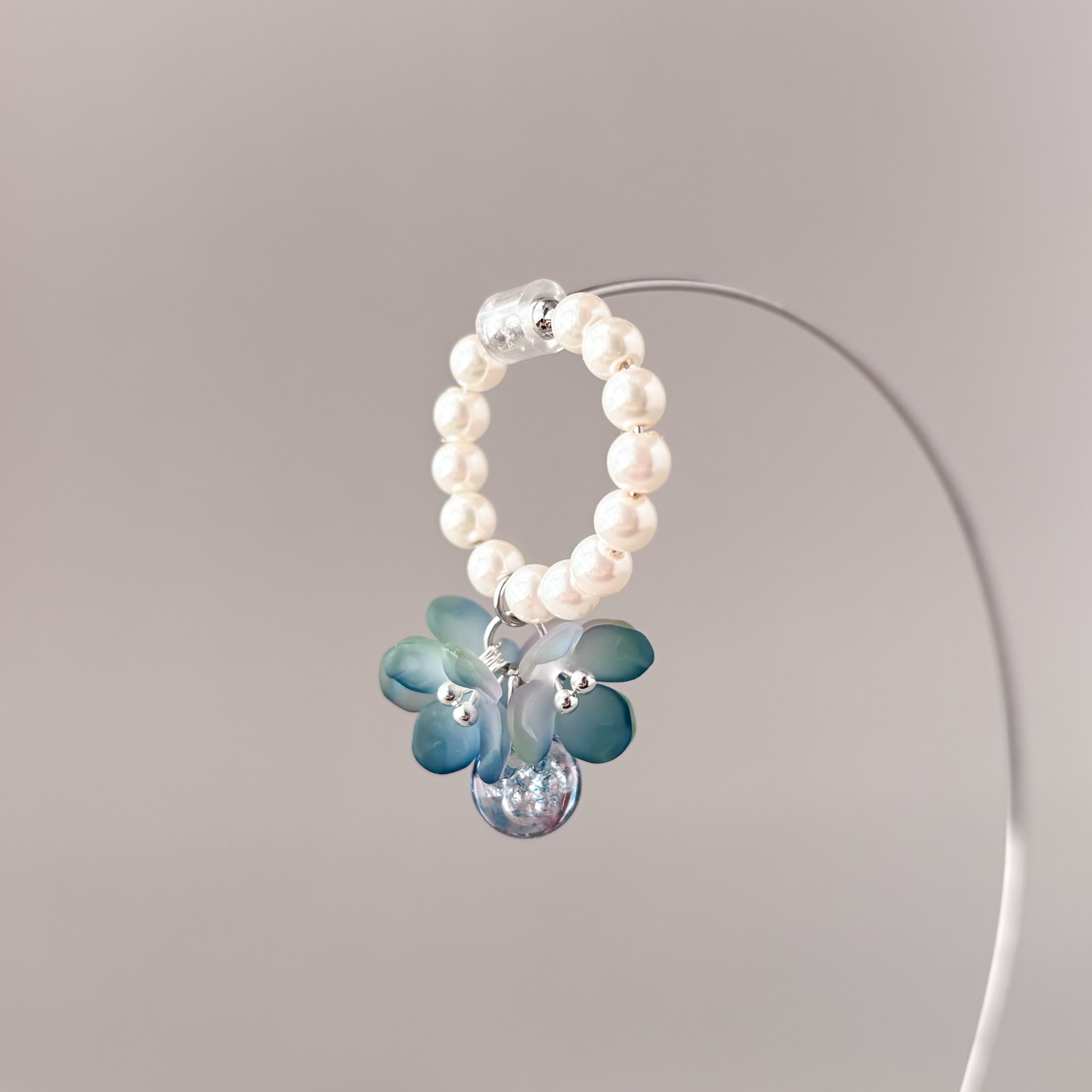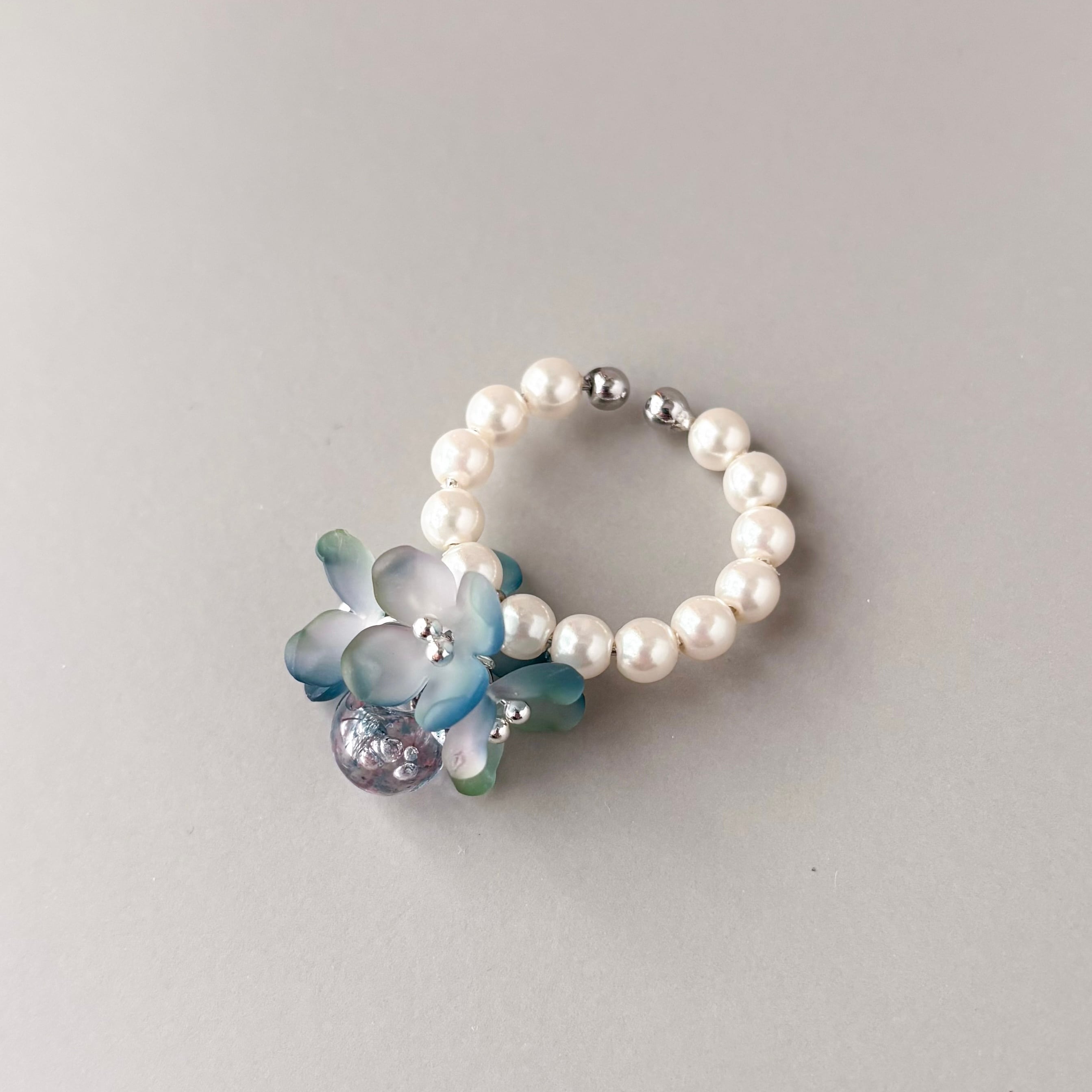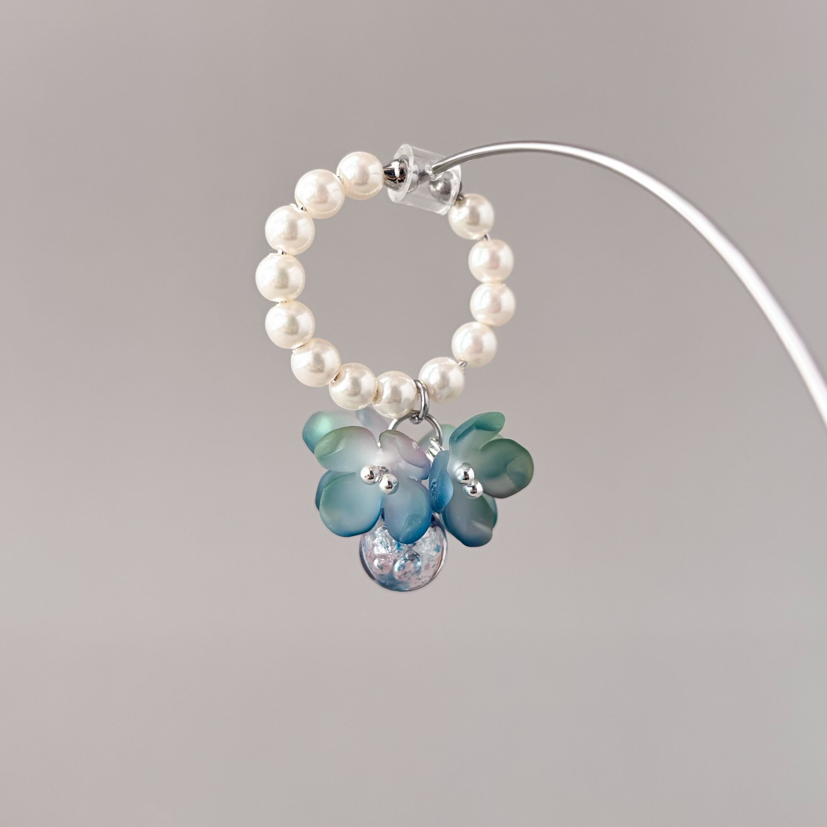 少し大きめブルーフラワーイヤーカフ 片耳 紫陽花 水彩画フラワー P1208 クリスマス