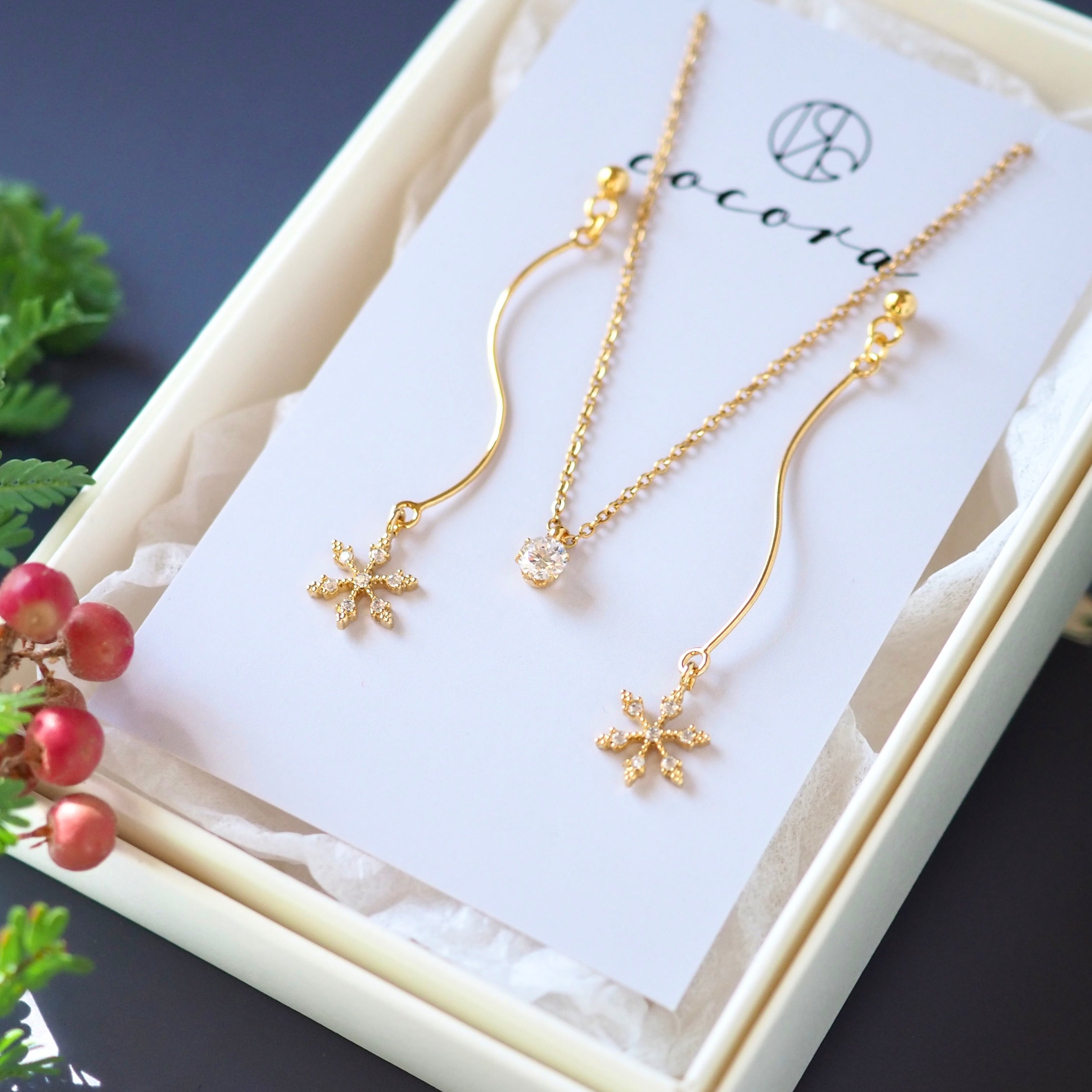 ■雪の結晶ピアス/イヤリングとのアクセサリーコフレ