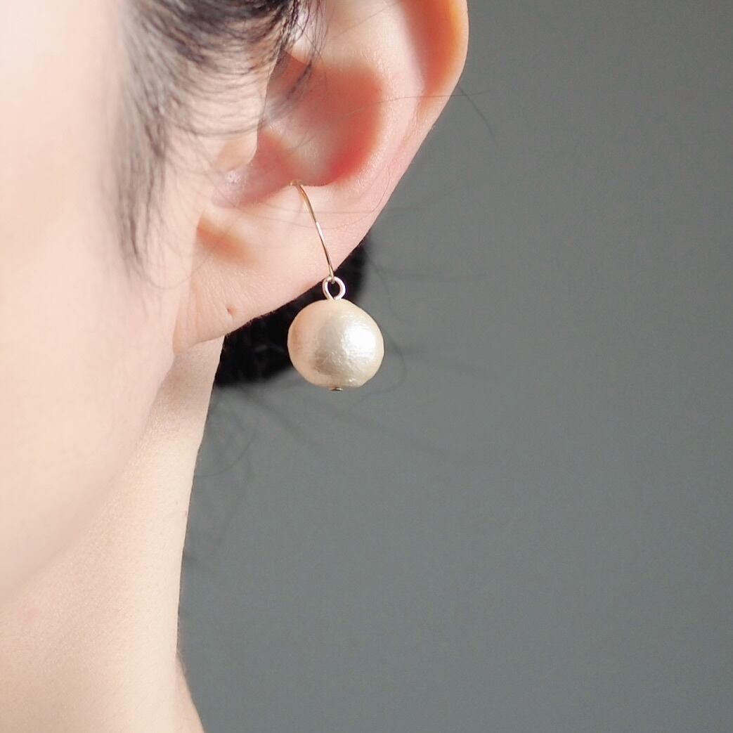 シンプルなコットンパール一粒のイヤーカフ