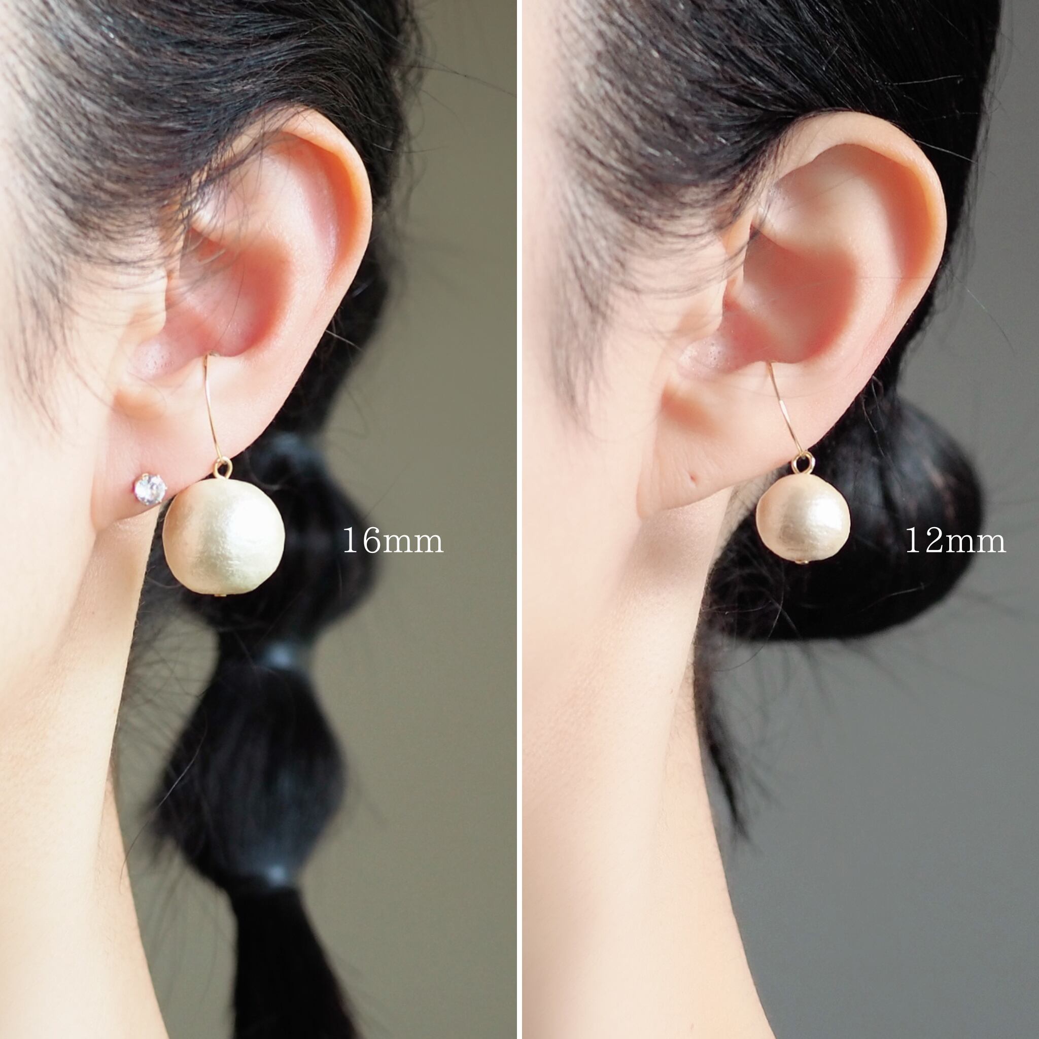 シンプルな12ミリのコットンパールを使っているので