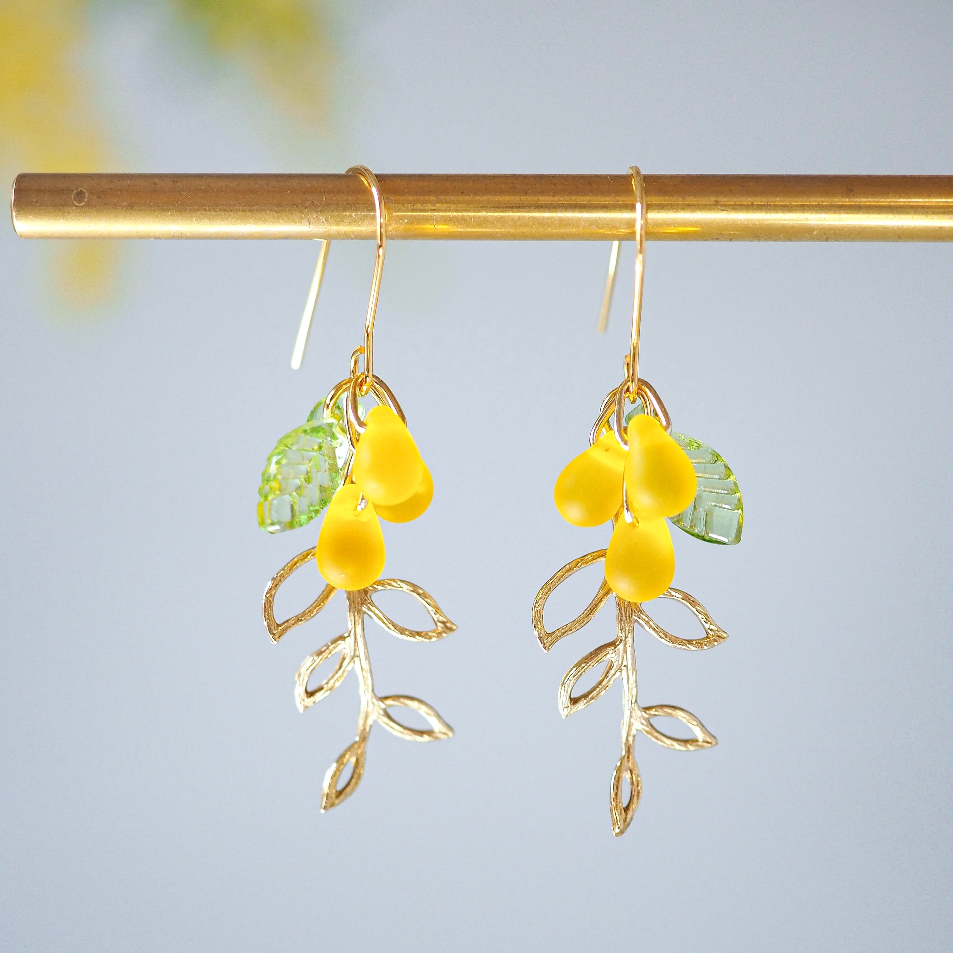 ドロップ/トパーズ/春の花/黄色/みもざ/ミモザピアス/ミモザイヤリング/金木犀/キンモクセイ/クリスマス/春/花/葉っぱ/リーフ/