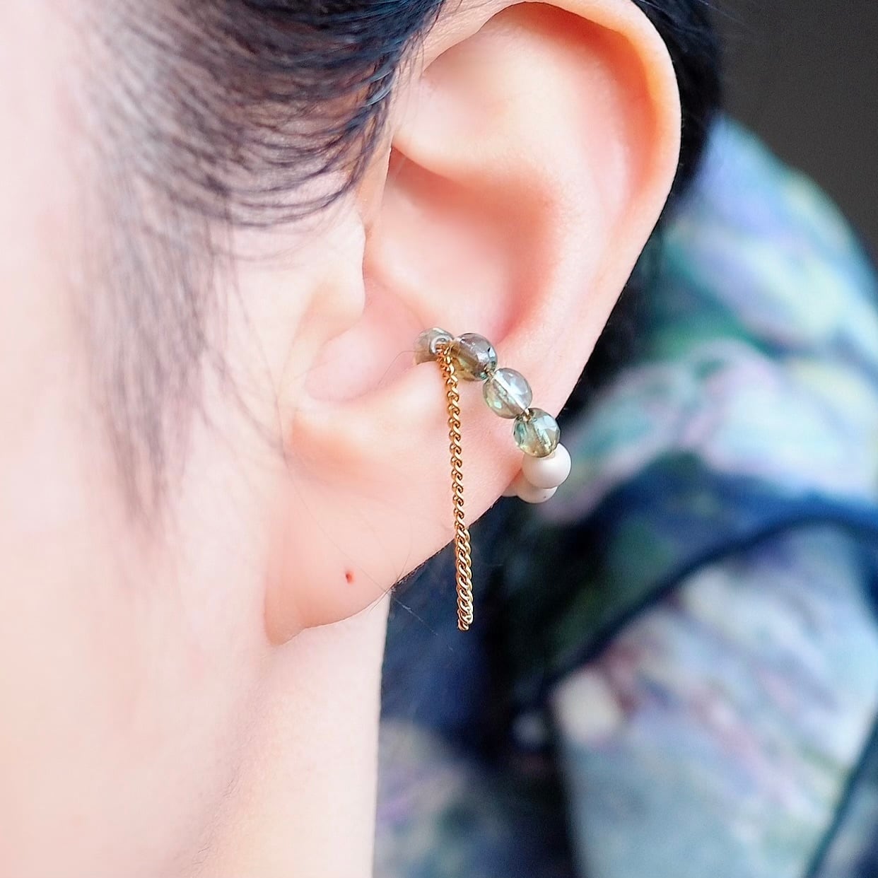 グリーン/イヤカフ/トレンド/オケージョン/卒入学式/卒園式/入学式/入園式/卒園式/七五三/前撮り/成人式/オフィス/式典/フォーマル/パール/パールイヤリング/イヤカフ/ギフト/ベージュ