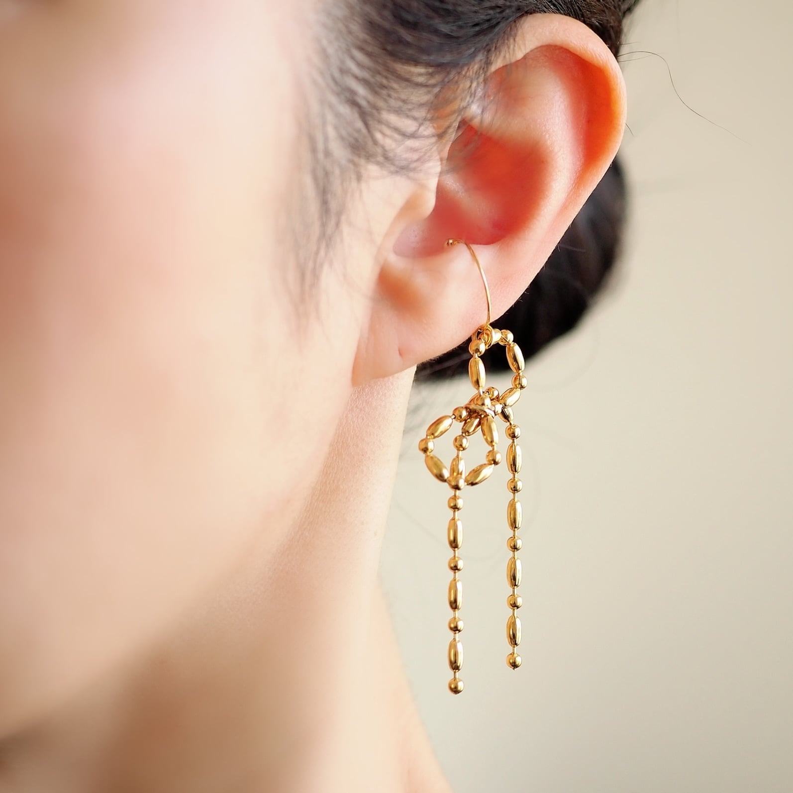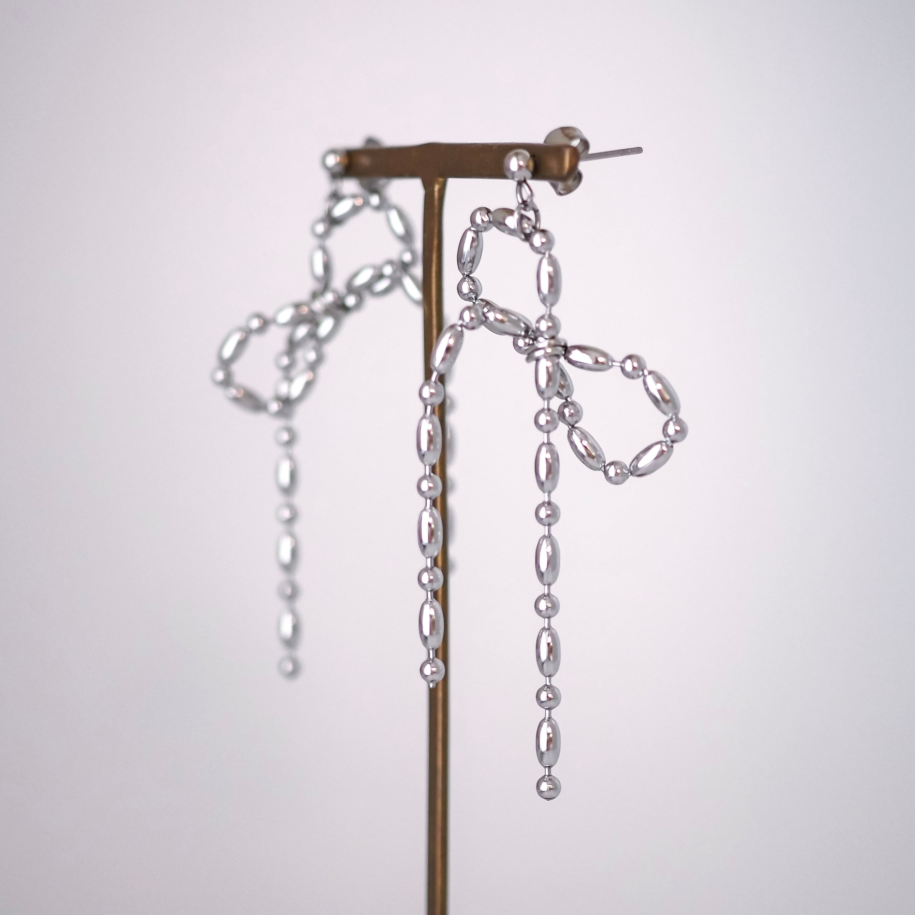 ボールチェーンをリボンの形に組みました