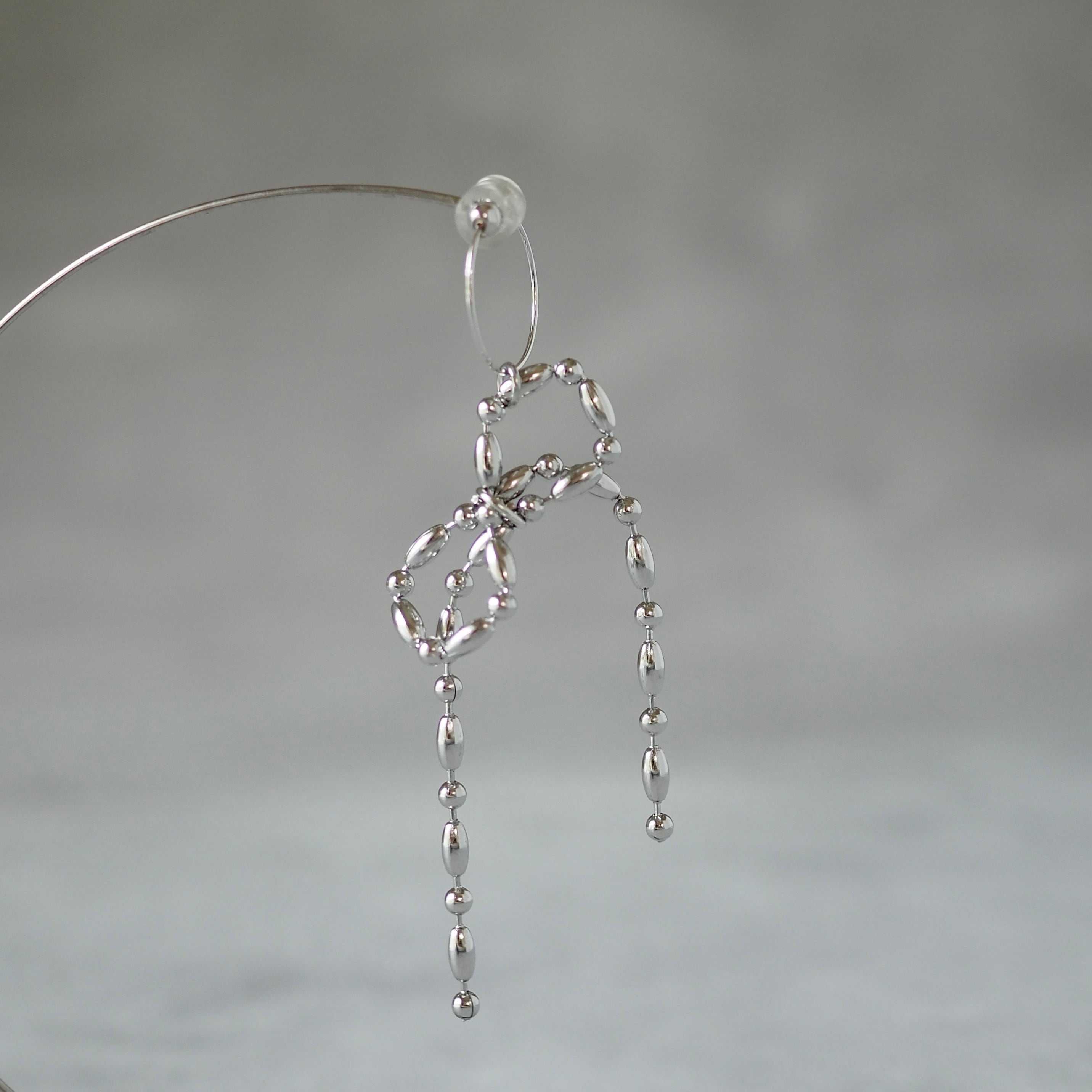 ボールチェーンイヤーカフリボン 片耳 シルバーサージカルステンレス P1186
