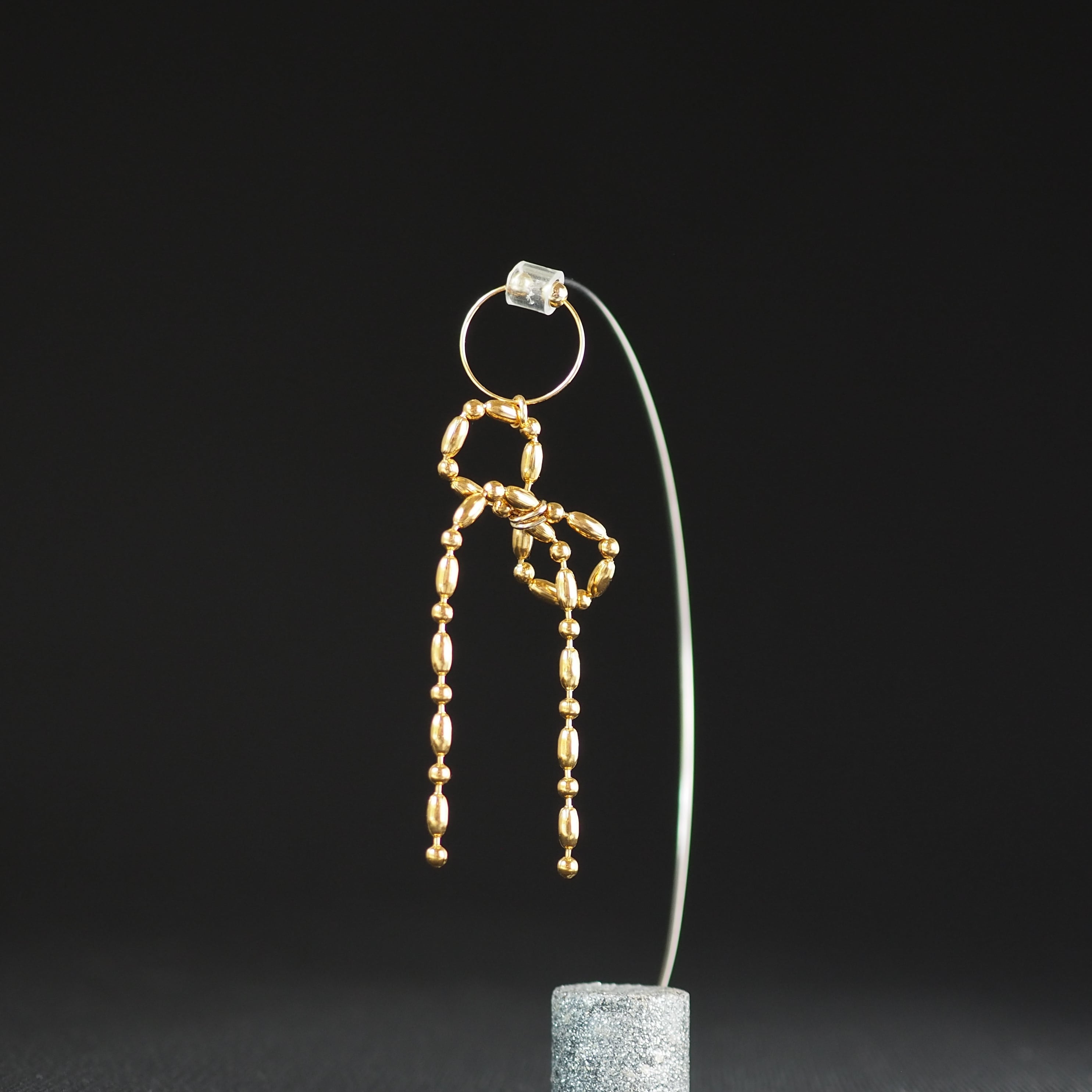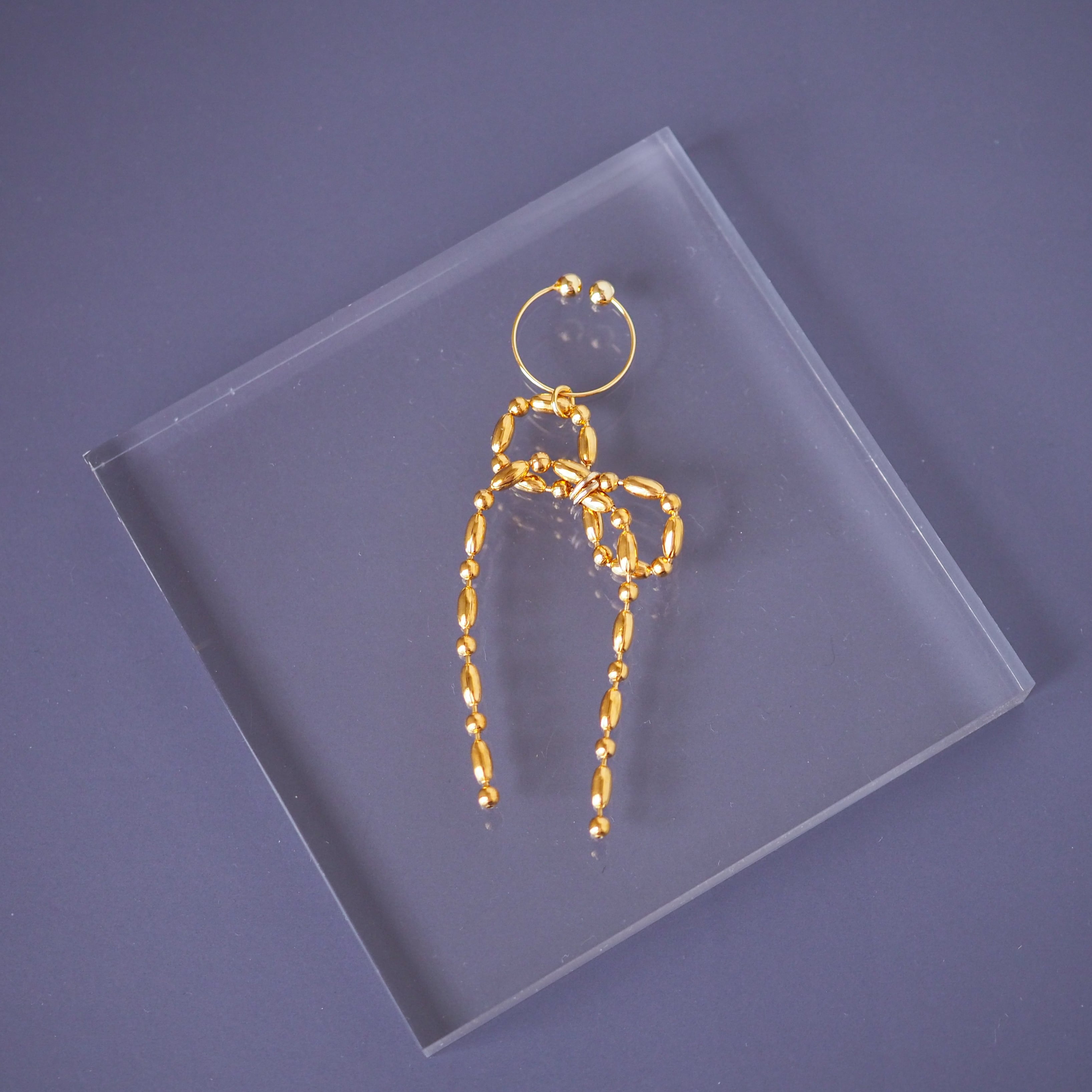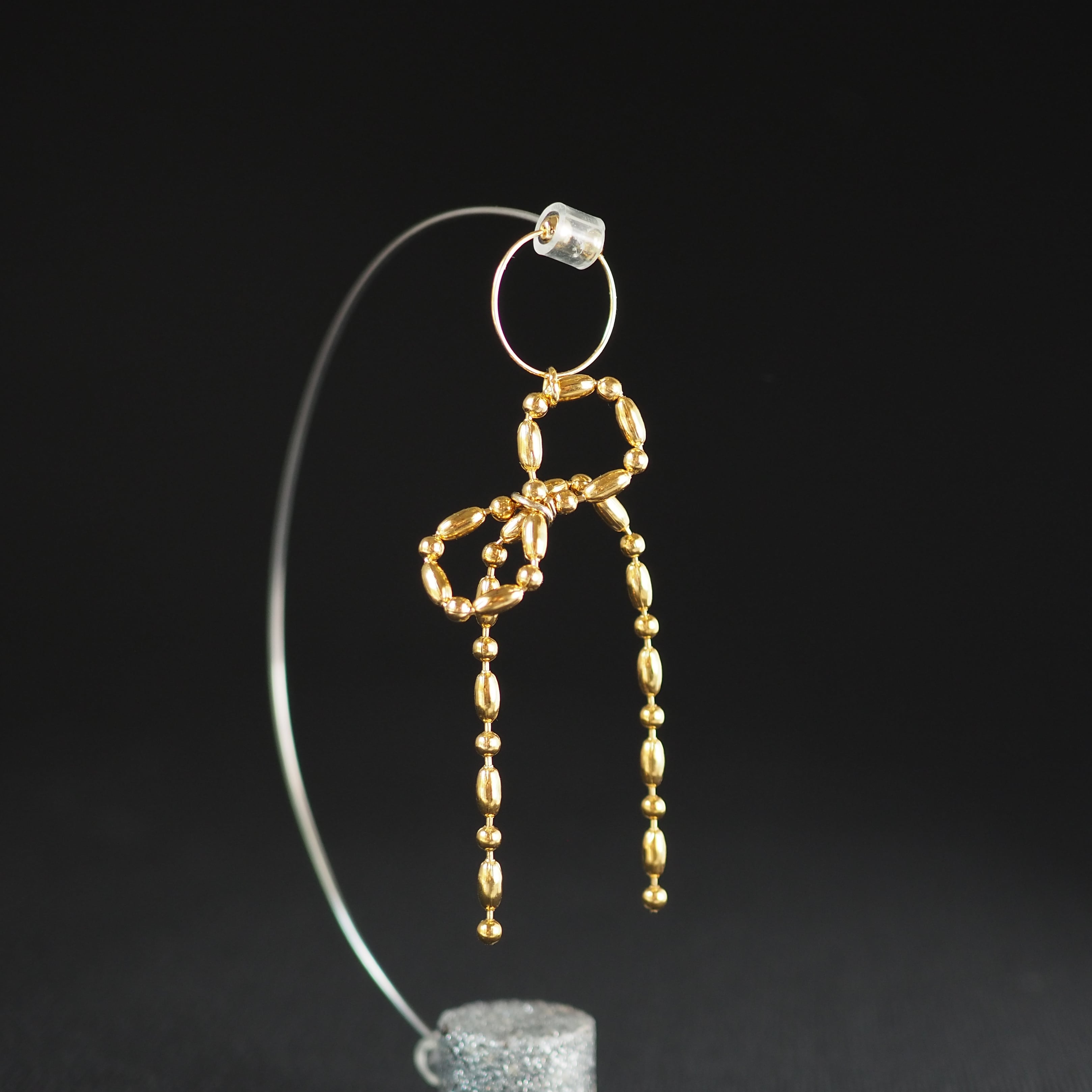 ボールチェーンイヤーカフリボン 片耳 ゴールド サージカルステンレス P1216