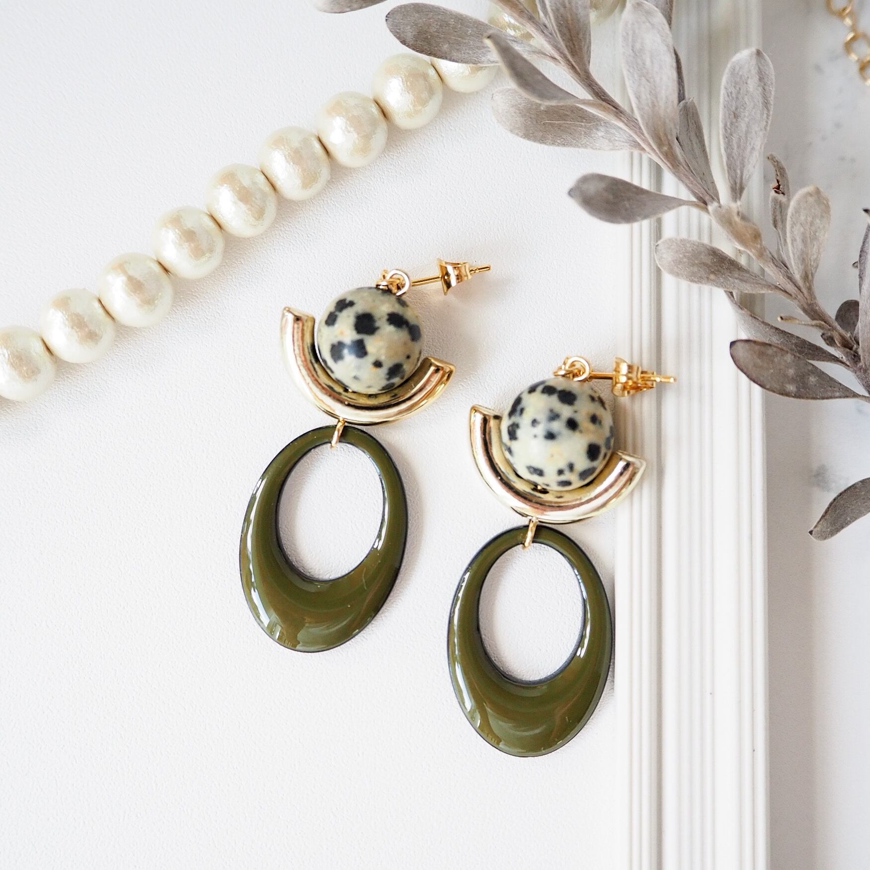 ダルメシアンジャスパー×カーキピアス /イヤリング