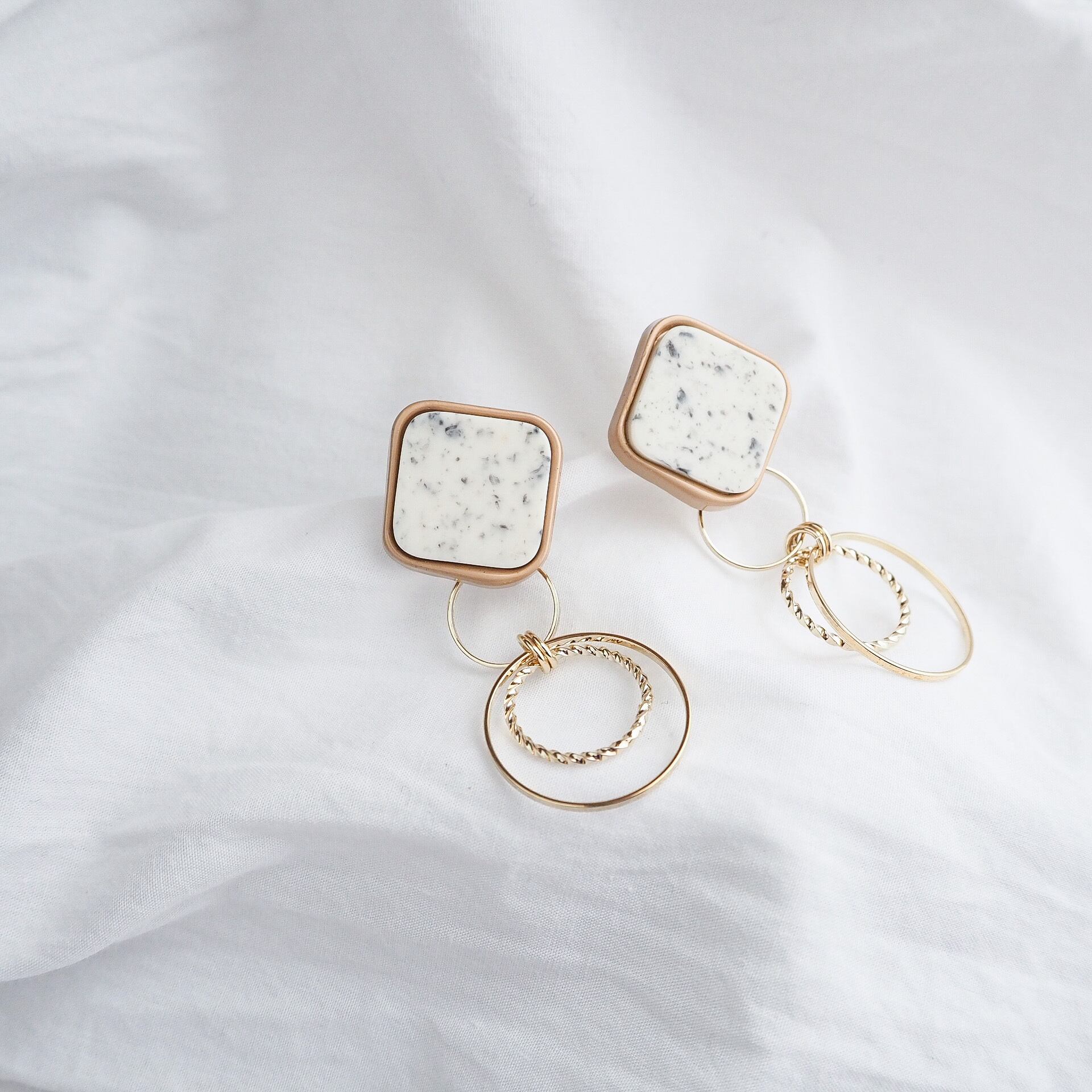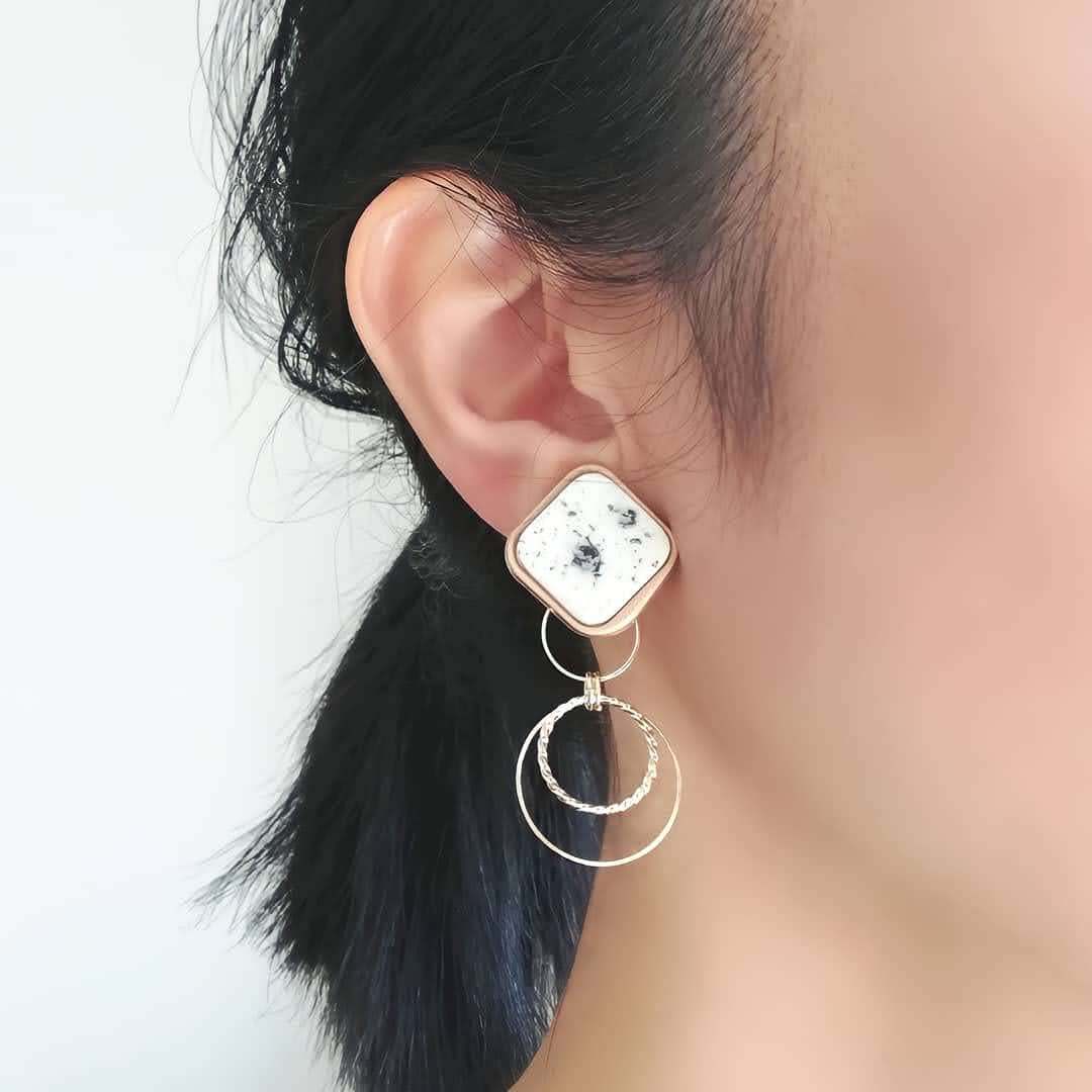 イヤリングの場合はイヤリングにリングを引っ掛けてありますので、その日の気分やファッションに合わせて着脱してくださたい。