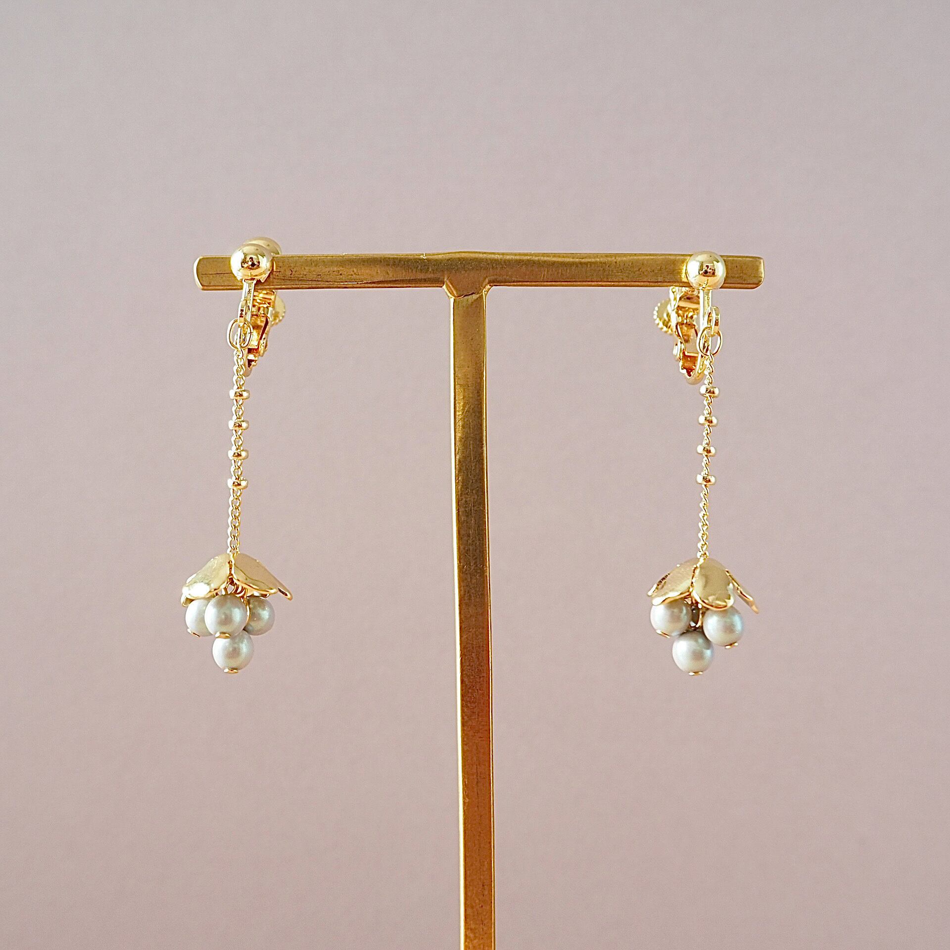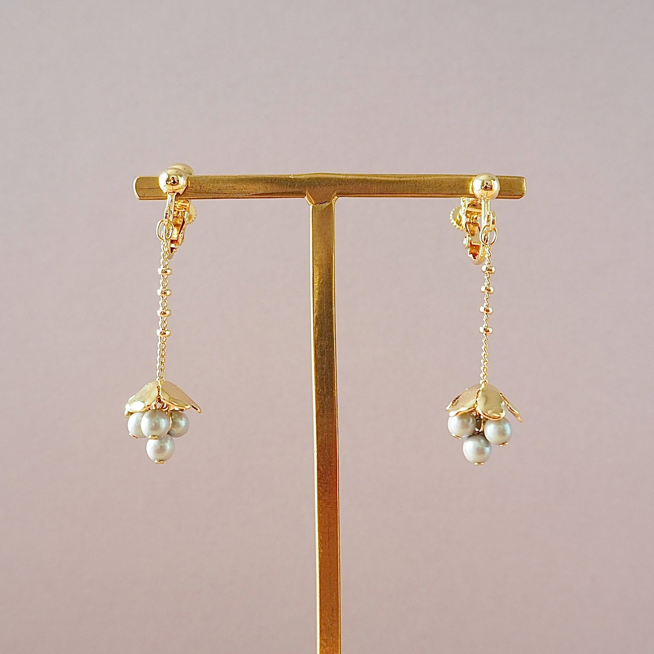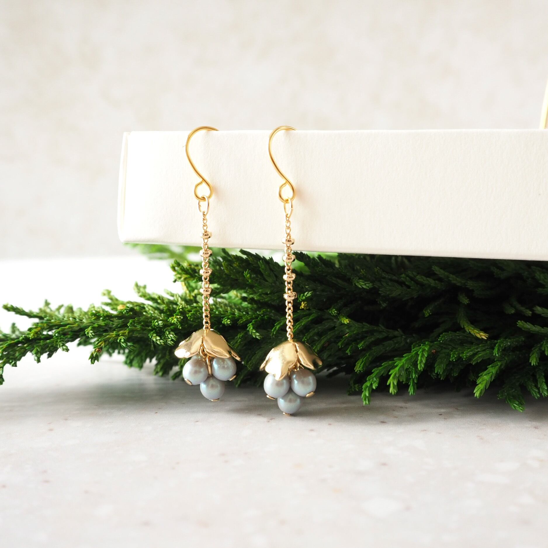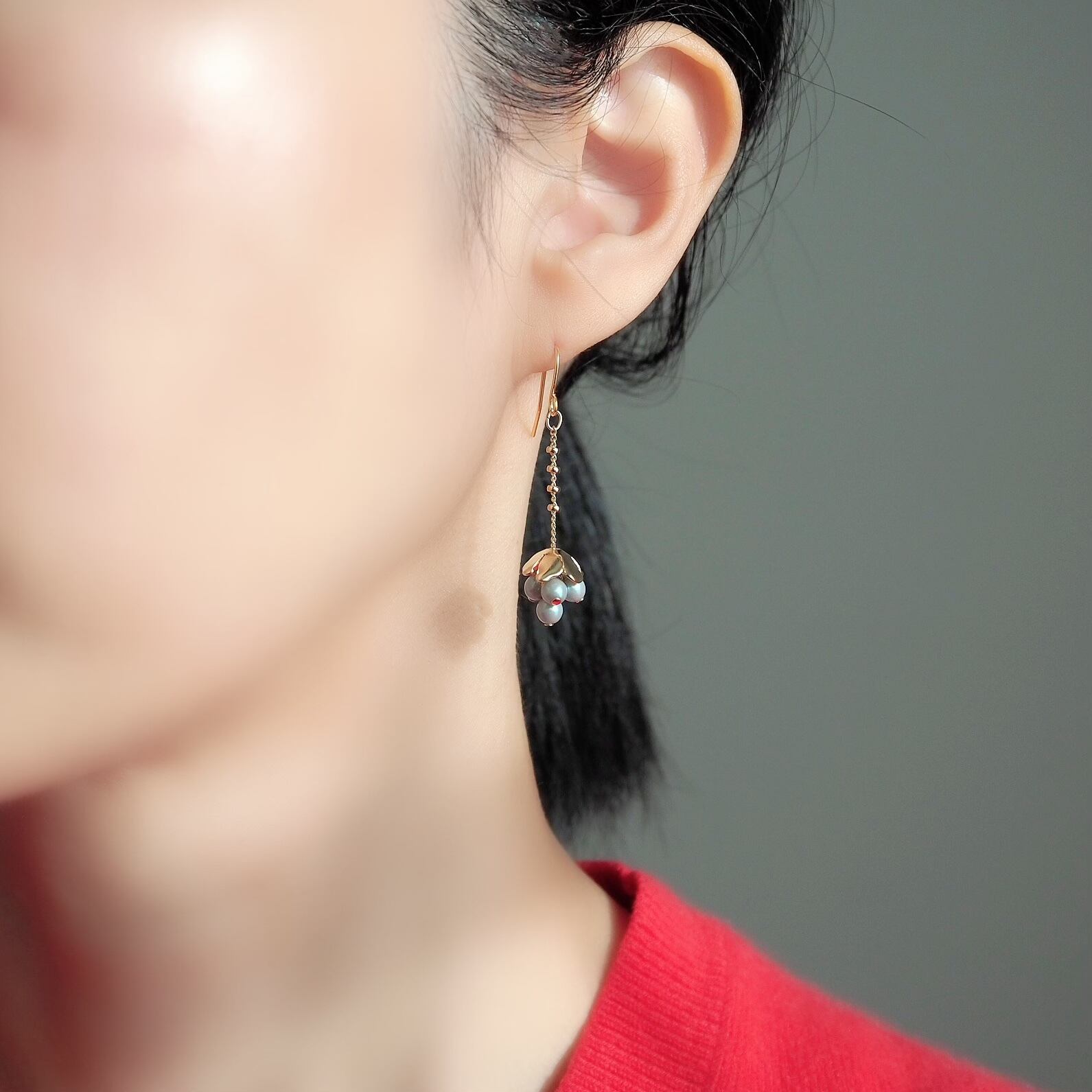 魅惑のブルーグレーカラーの実の揺れるピアス。
