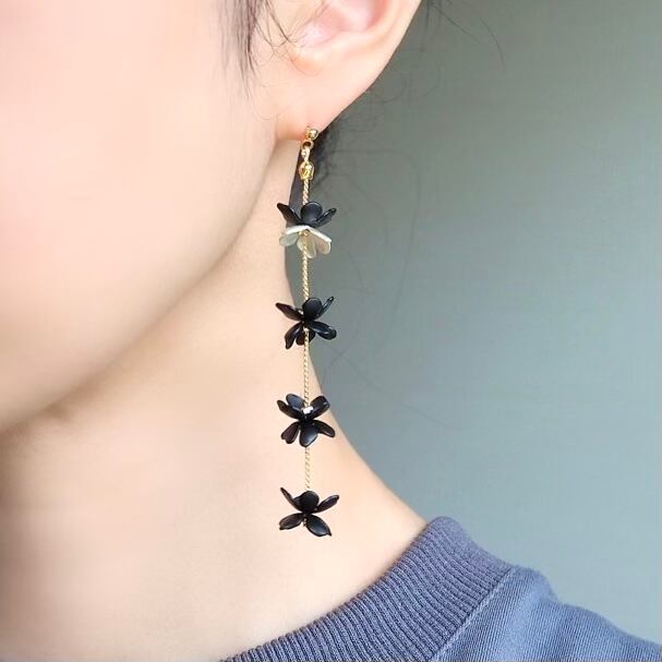 連なるモノトーンフラワーピアス /イヤリング サージカルステンレス