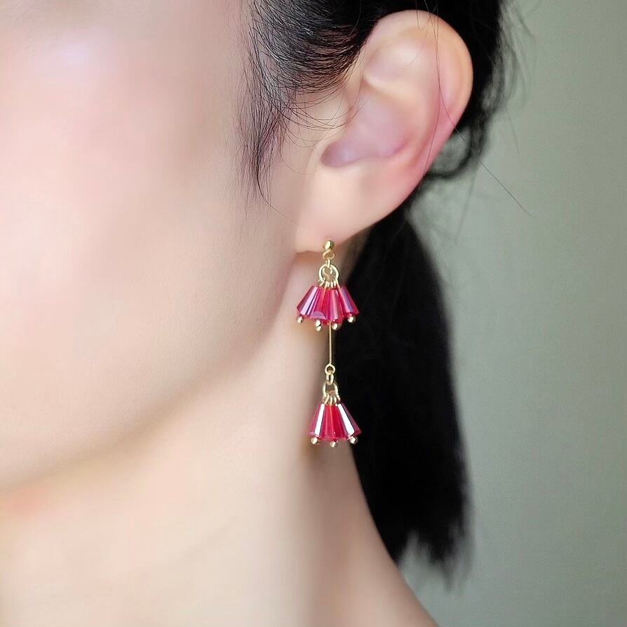 シャンデリアピアス レッド /イヤリング サージカルステンレス