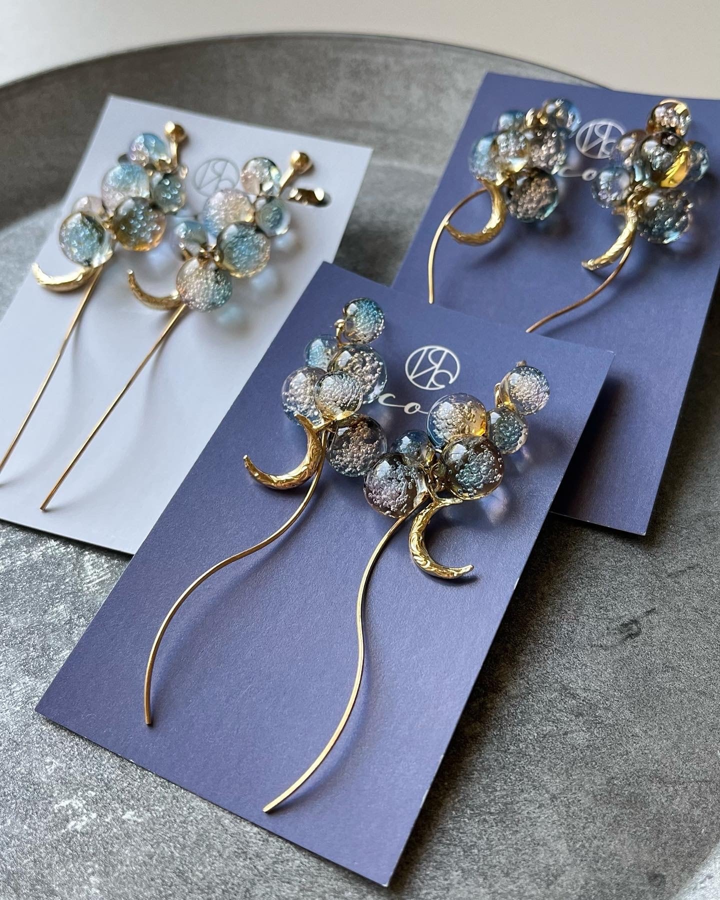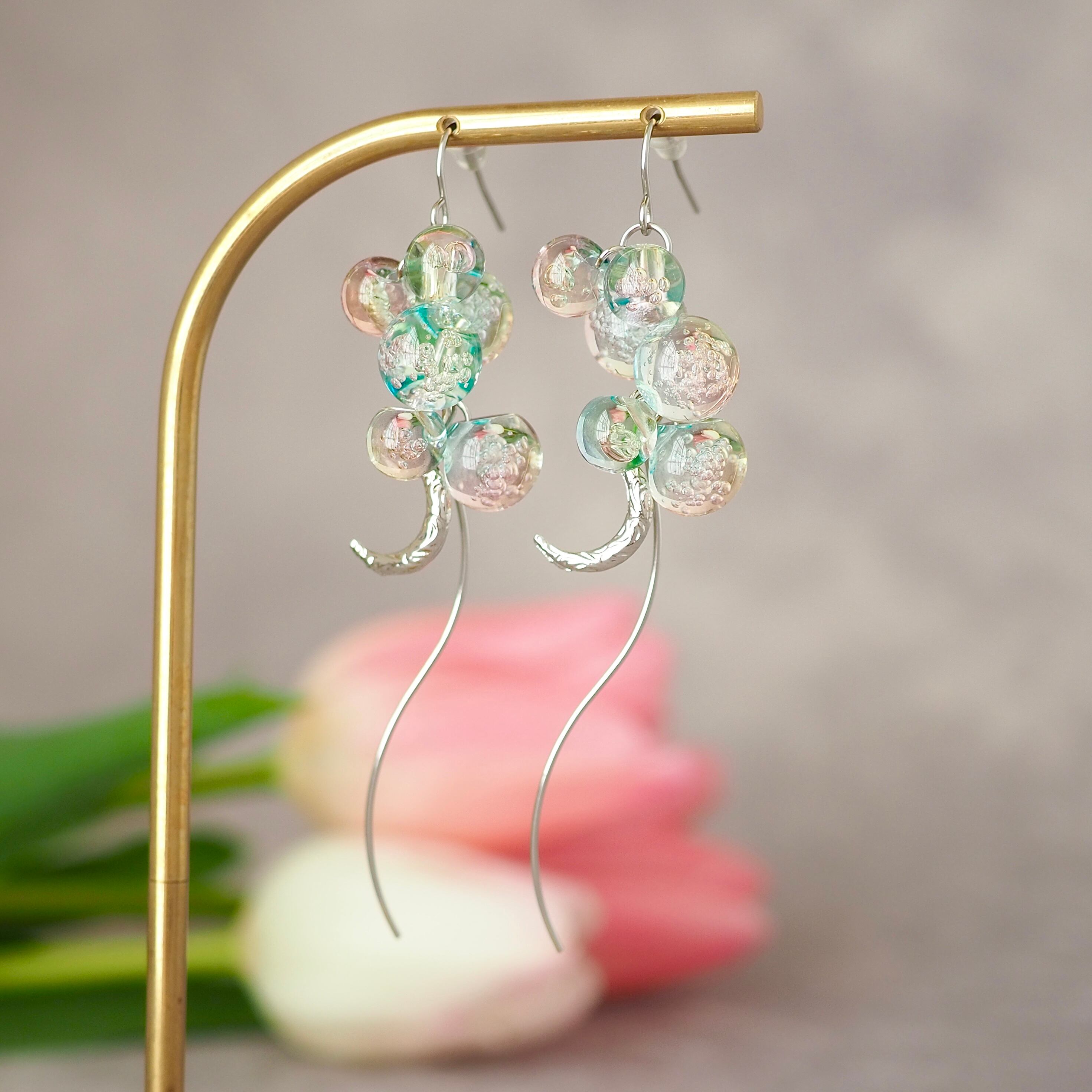 作家自身も金属アレルギーがある為、アレルギーを気にせず付けれるピアスが欲しくて制作しました。