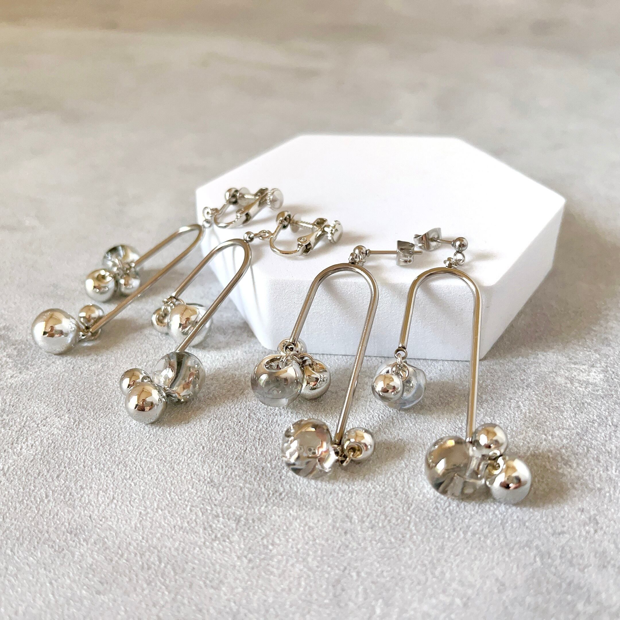 ▶ピアスの着用画像はピアスホールに通す部分を交換したり私物を使ったりなど工夫して撮影しておりますので、