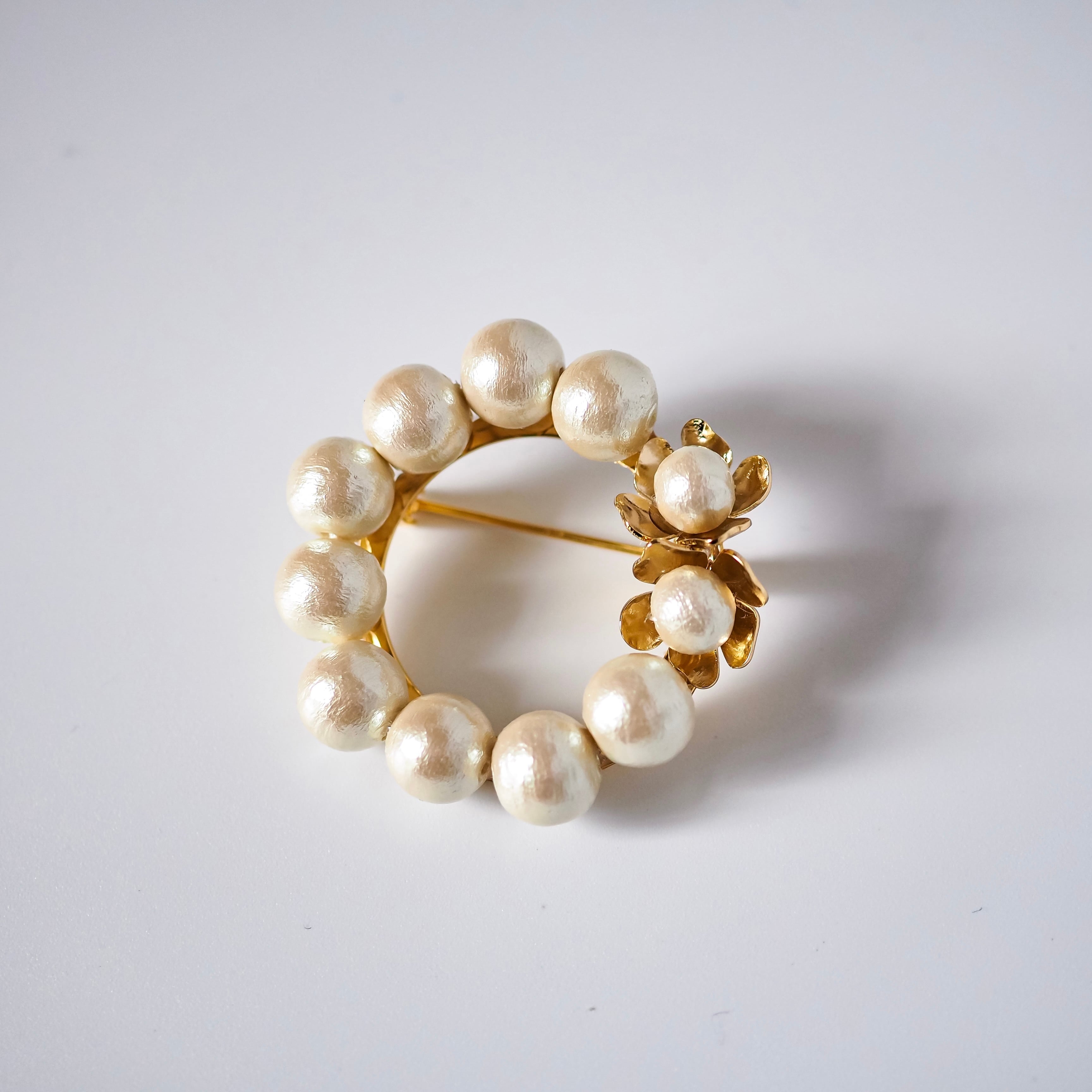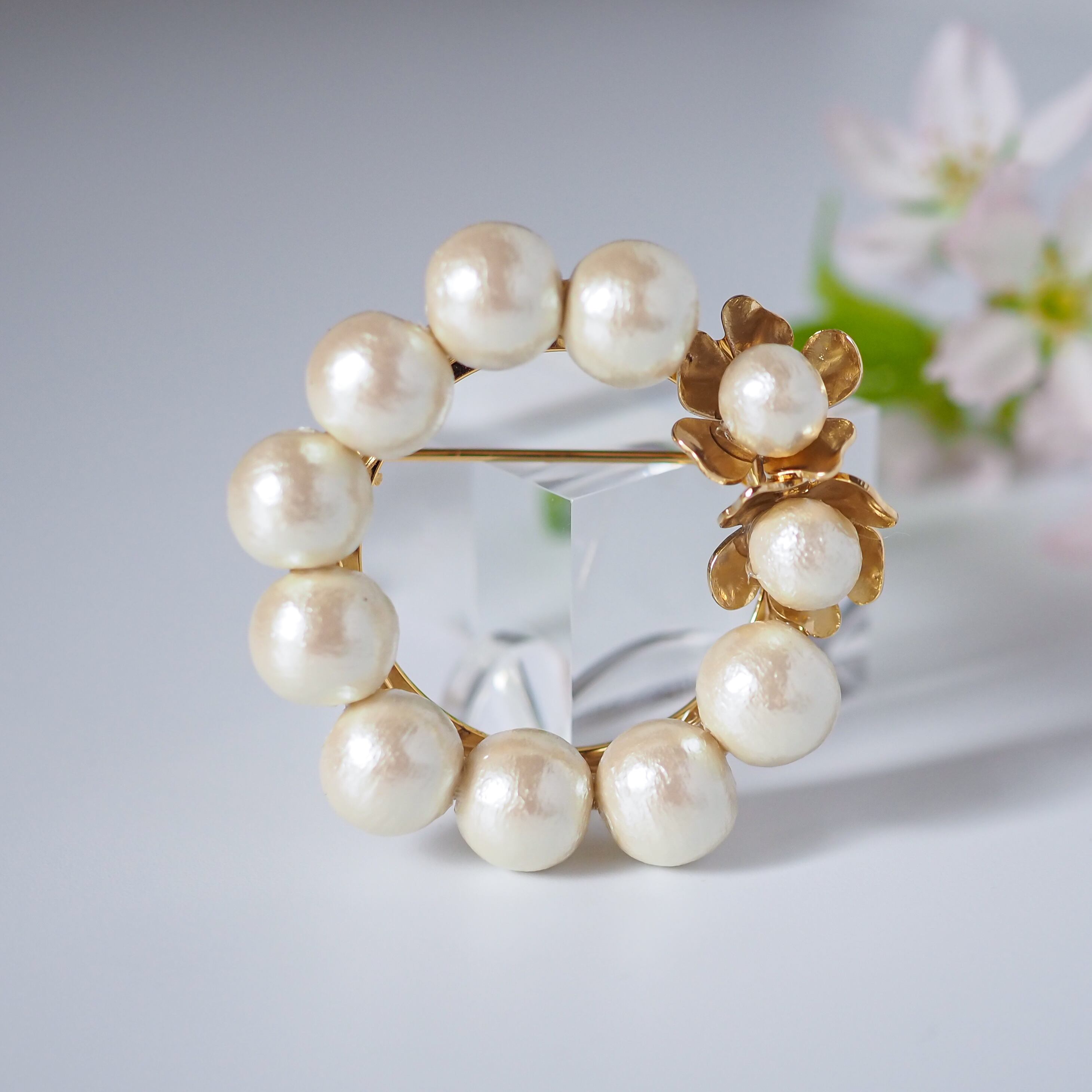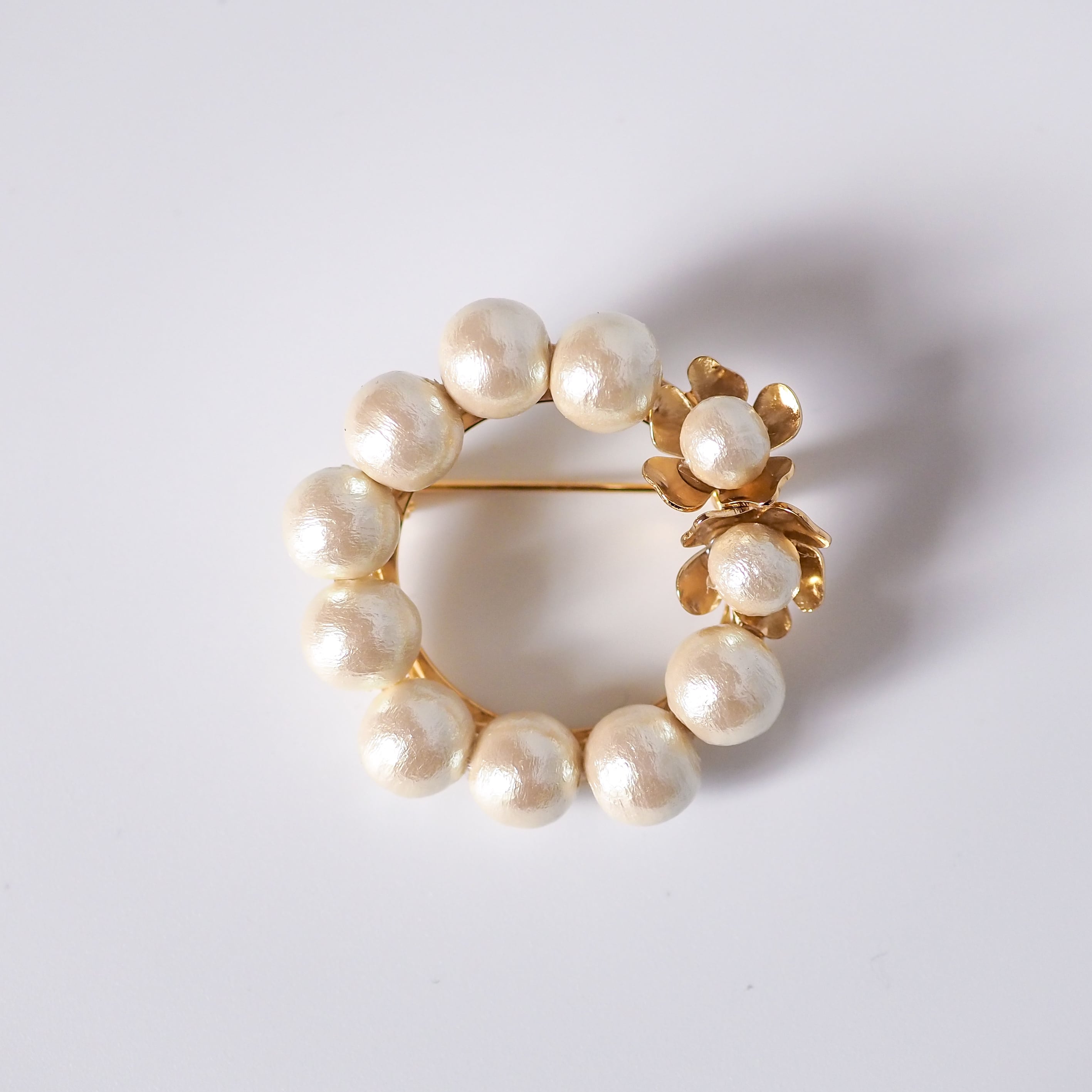 花とコットンパールリースブローチ ハレの日 卒入学式