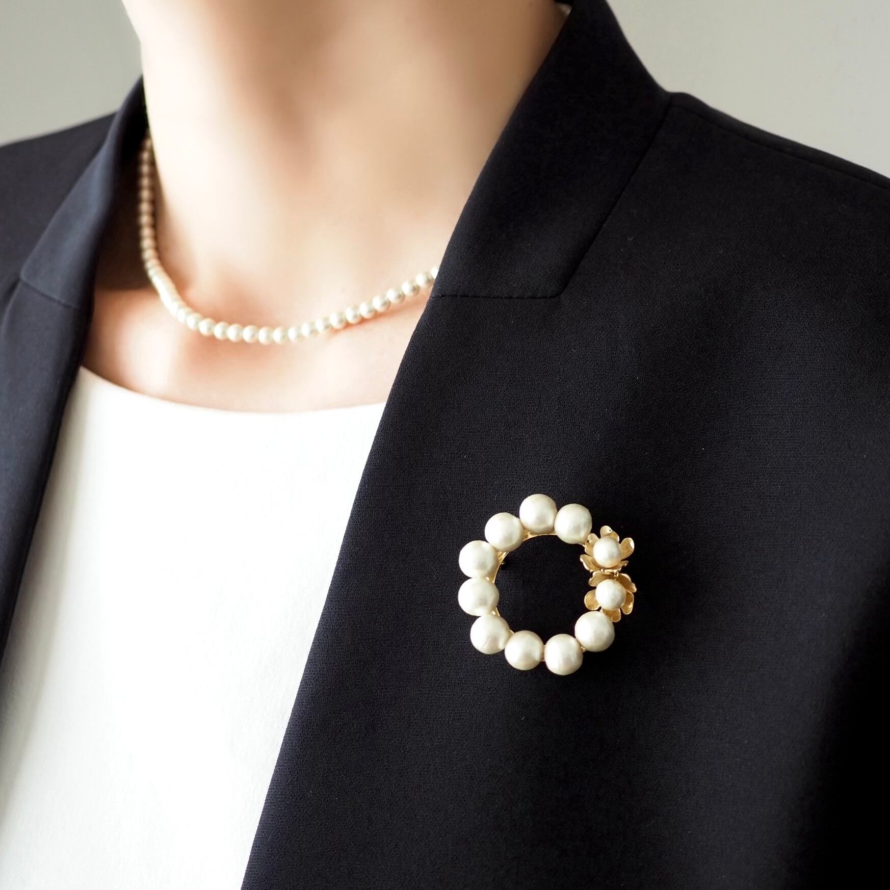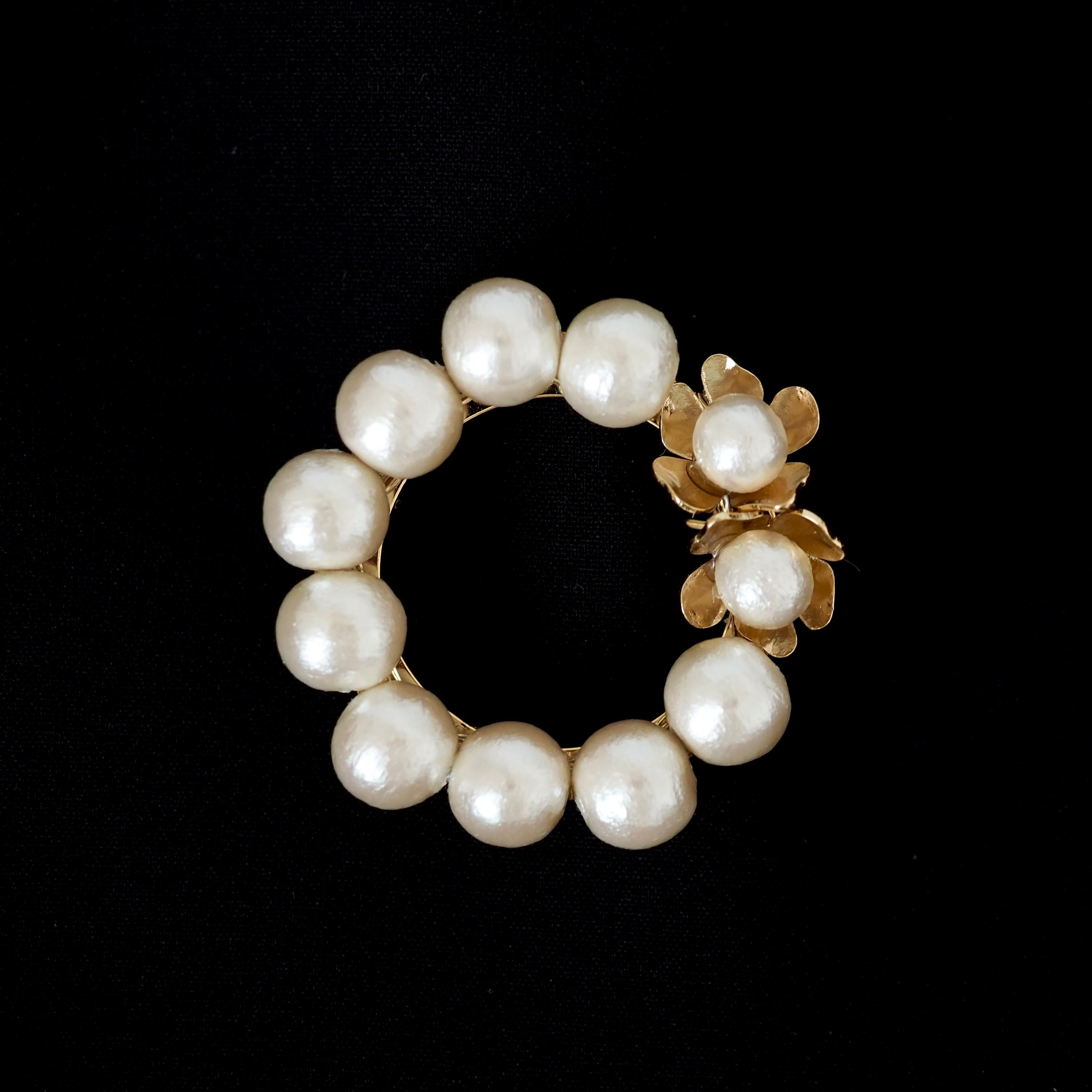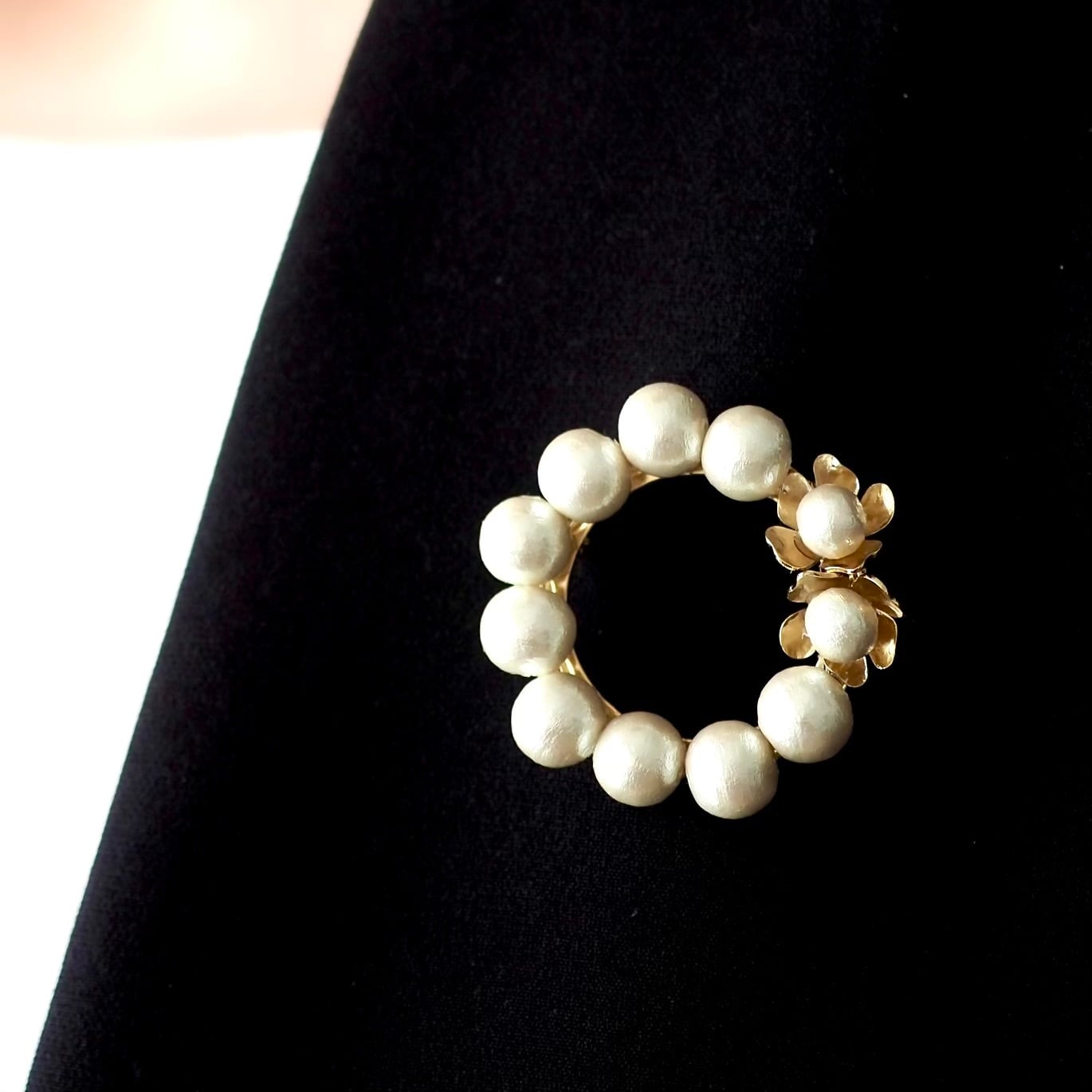 花とコットンパールリースブローチ ハレの日 卒入学式