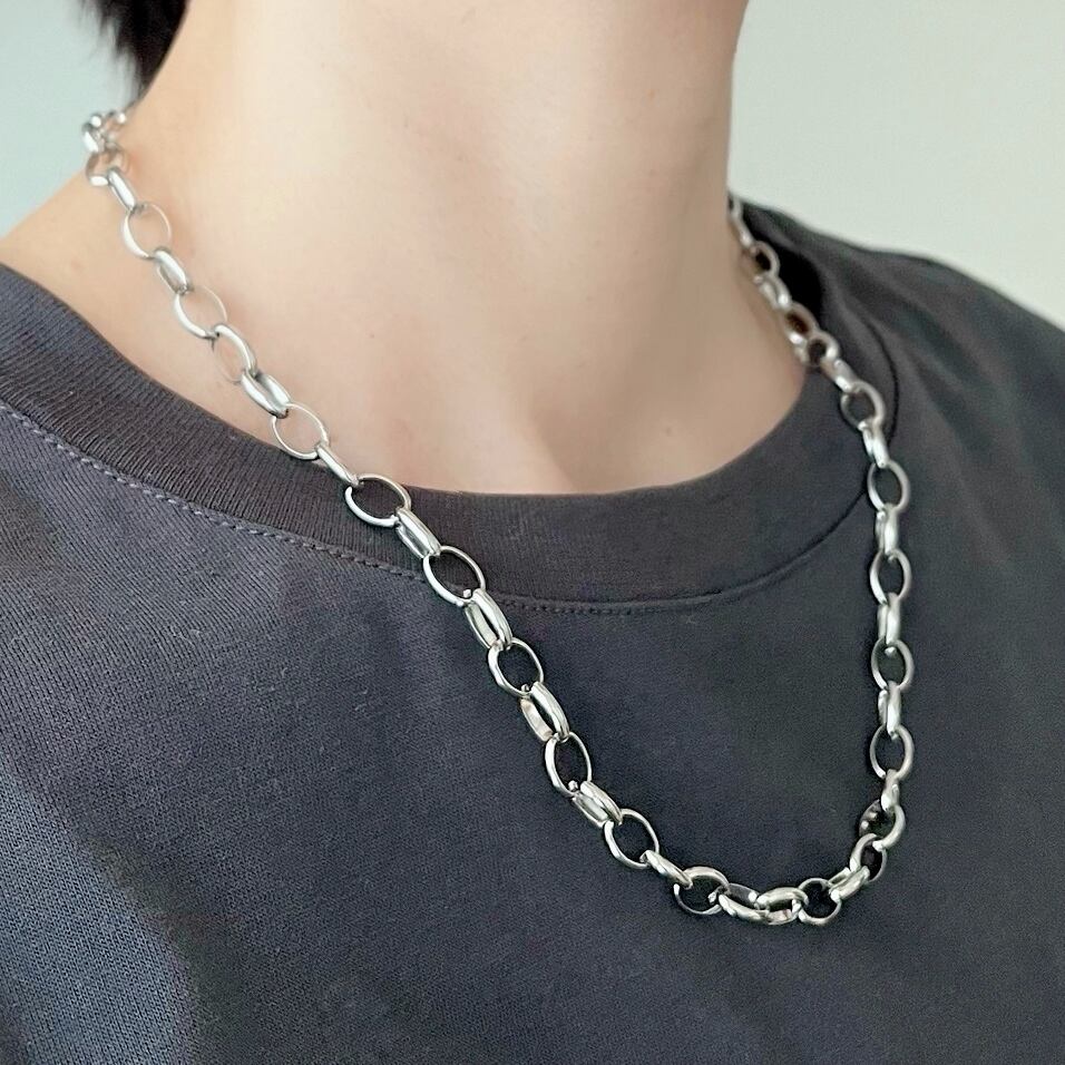 金属アレルギー対応 ボリュームチェーンリングネックレス シルバー サージカルステンレスN143